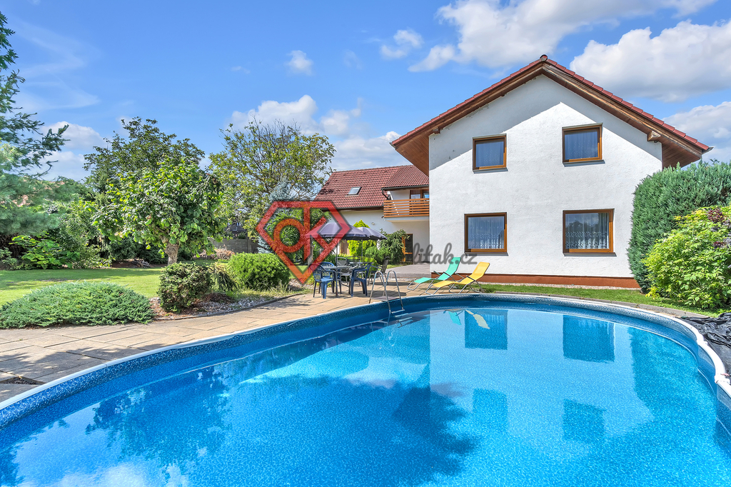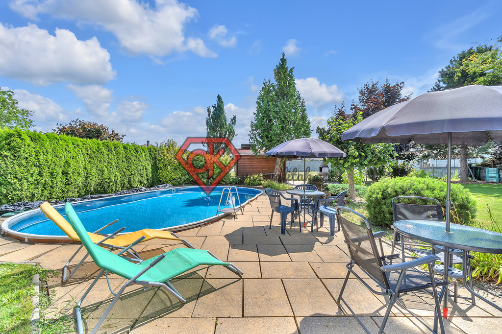 - krásná zahrada kde nechybí ani zabudovaný bazén, venkovní posezení, gril a zahradní domek