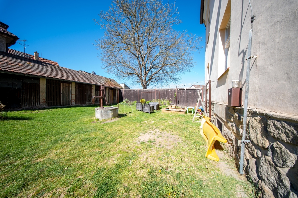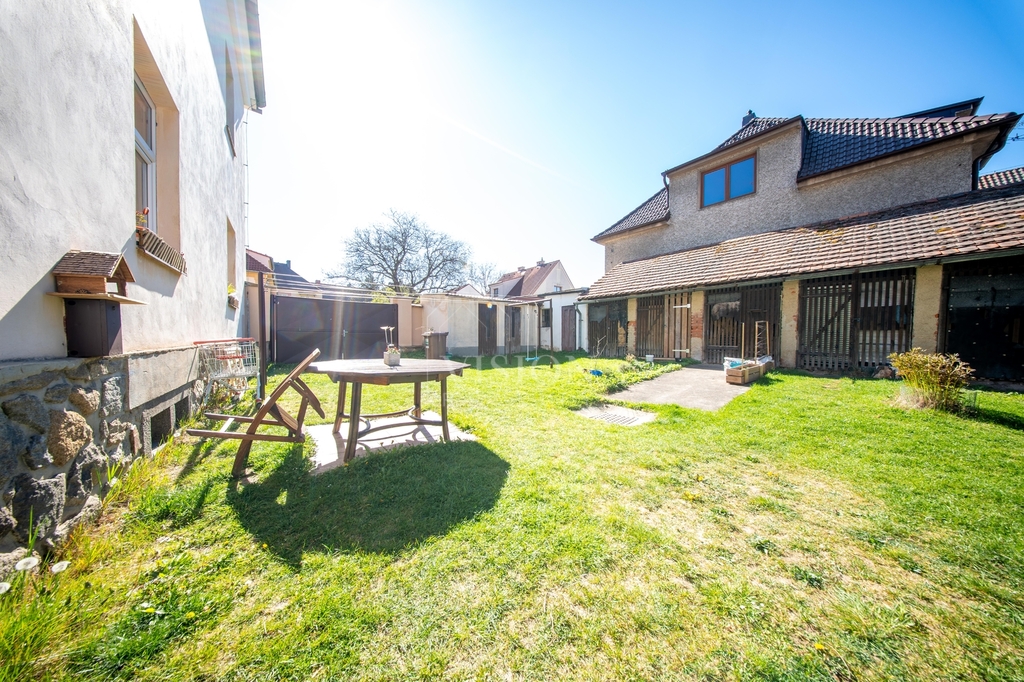 K bytu náleží možnost využívání příjemné zahrádky ve vnitrobloku domu. Tento prostor nabízí klidné místo k odpočinku a zároveň praktické využití díky venkovní kóji, vhodné například pro uskladnění dřeva, kol nebo zahradního náčiní.