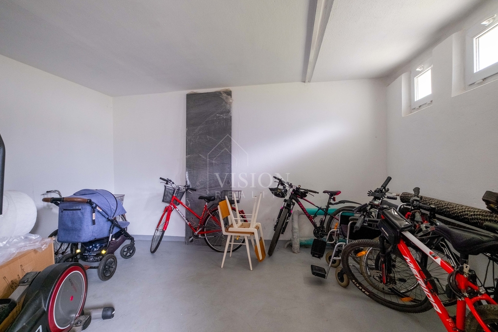 Bytová jednotka se nachází v 1. patře a disponuje užitnou plochou 64,86 m². Dispozičně je řešena velmi prakticky – nabízí předsíň, kuchyni, obývací pokoj, ložnici, koupelnu, samostatné WC a prostornou komoru, která poskytuje dostatek úložného prostoru. Další úložné možnosti zajišťuje sklepní kóje a k dispozici je také společná kolárna.