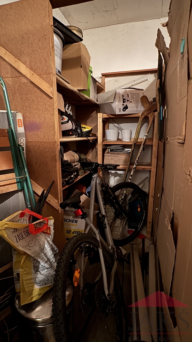 Popis: chodba (šatní skříň), koupelna (sprchový kout, umyv. se zrcadlem a skříňkou, vývody na pračku, bodové osvětlení), samostatné WC, kuchyň (rohová kuch. linka s HV troubou se sklo-ker. deskou, digestoří a myčkou) s jídelnou, 2x ložnice, prostorný obývací pokoj s velkou lodžií. K bytu náleží vlastní 2x sklepní kóje a spol. prostory (kolovna, sušárna a kotelna) v suterénu domu a parkování na pozemku SVBJ.