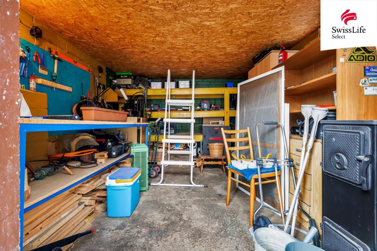 Pokud zatoužíte po čerstvém vzduchu, přesunete se na terasu. Večer se za jakéhokoli počasí můžete schovat pod krytou pergolou, kde je venkovní krb, vířivka a posezení. Ale to není všechno. Naleznete tu i prostornou dílnu pro kutily, venkovní kuchyň a dokonce i sklep, který by mohl posloužit nejen jako sladovací prostor, ale klidně jako menší domácí wellnes se saunou.
