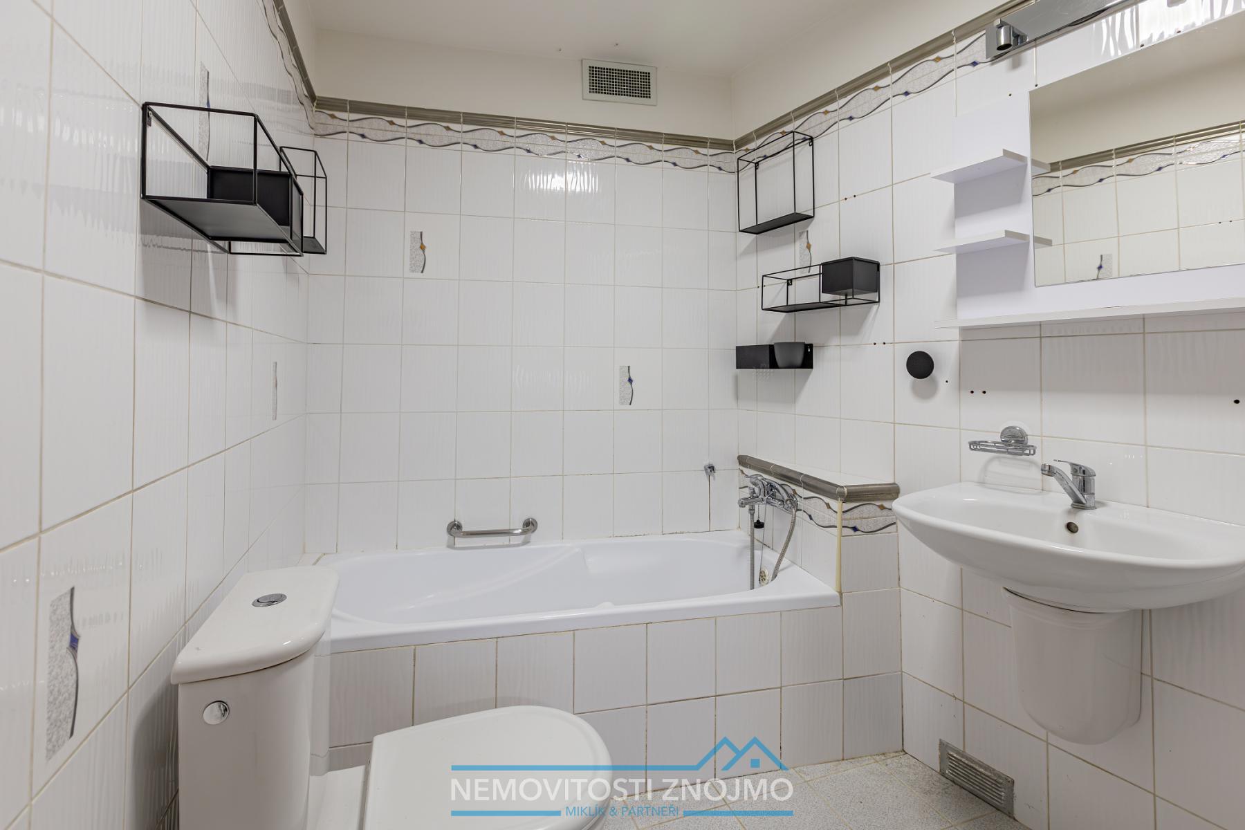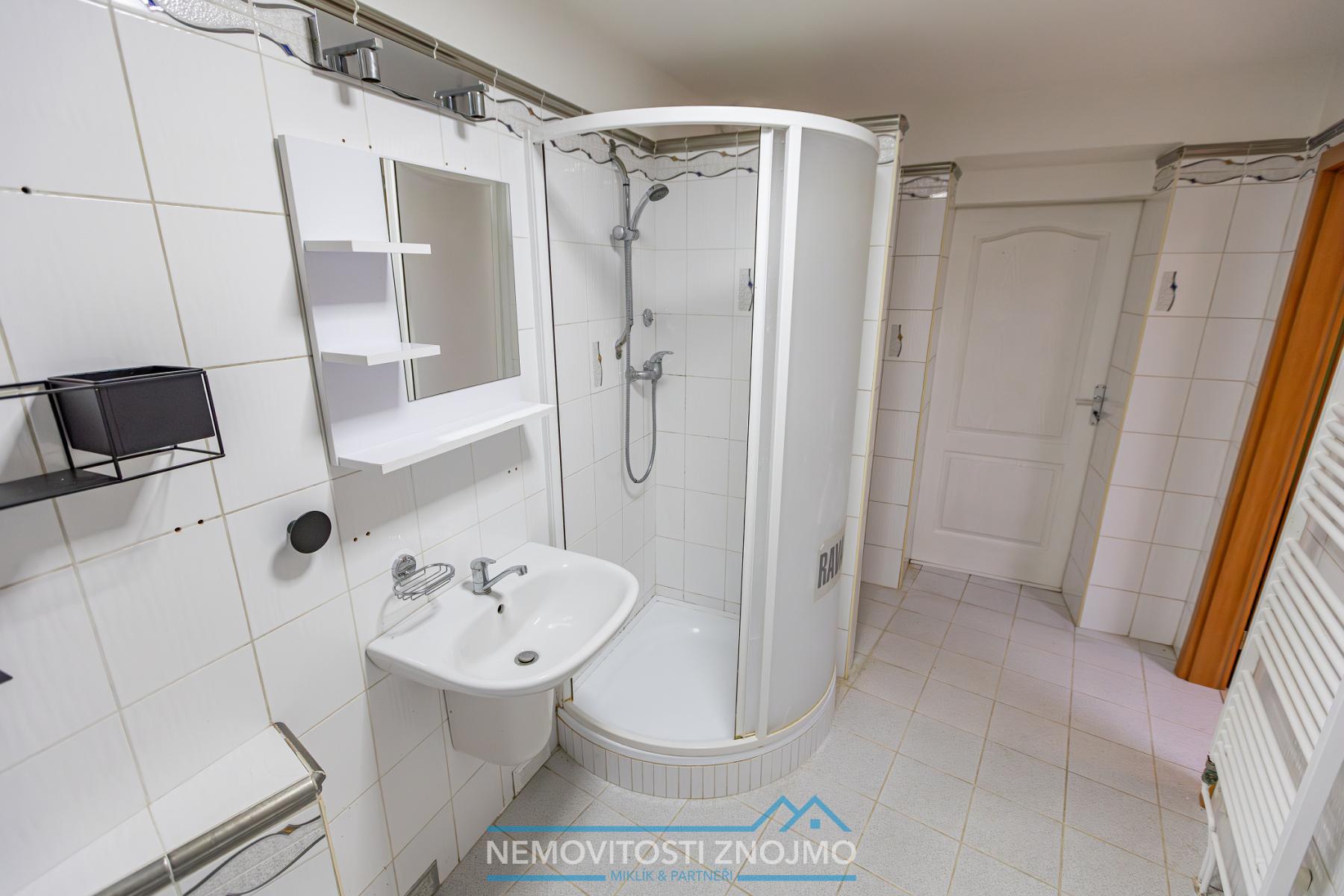 e.) koupelna s vanou a sprchovým koutem