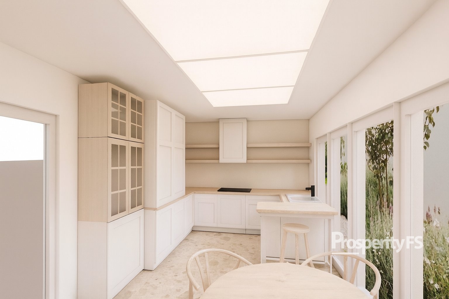 Součástí prodeje je architektonická studie, která rozšiřuje původní užitnou plochu na 88,40 m² a proměňuje objekt v moderní open-space rodinný dům se zahrádkou.