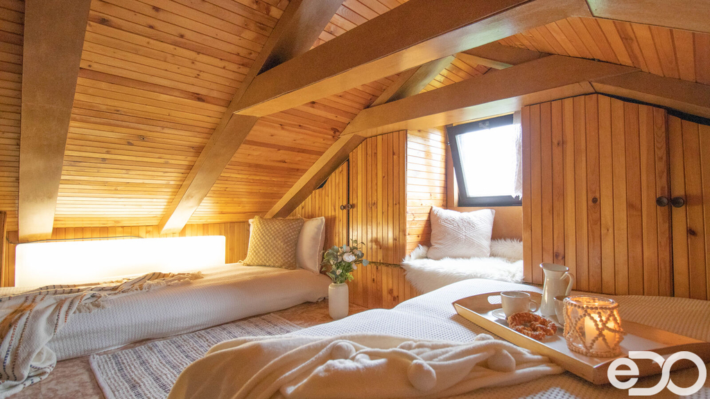 Tato zděná chata nabízí hlavní místnost s kuchyňskou linkou, nově zrekonstruovanou prostornou koupelnu a samostatnou toaletu. Dále se lze z hlavní místnosti dostat po vysouvajících schodech do střešního prostoru, kde se pohodlně vyspí minimálně čtyři osoby. Před vchodem do chaty je terasa, ze které je krásný výhled na celý pozemek a na okolí Mladé Boleslavi. Celá chata je podsklepená a prostor terasy vybízí přistavět další místnost, nebo zimní zahradu.