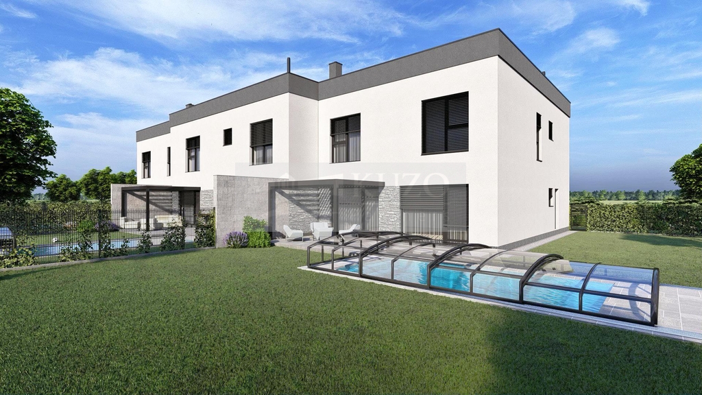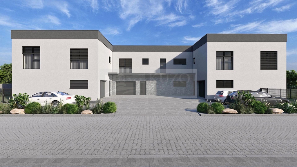 V moderní a prakticky řešené vile, najdete krajní bytovou jednotku o dispozici 5+kk a komfortních 168 m2 vnitřní užitné plochy ve dvou podlažích. Podlahová plocha jednotky je 179 m2. Součástí jednotky je garáž a k tomu navíc je před vilou další soukromé parkovací stání. V okolí domu si budete užívat privátní rovinatou zahradu o výměře 394 m2, která navazuje na venkovní terasu. Celková výměra pozemku, který náleží k této jednotce je 557 m2.