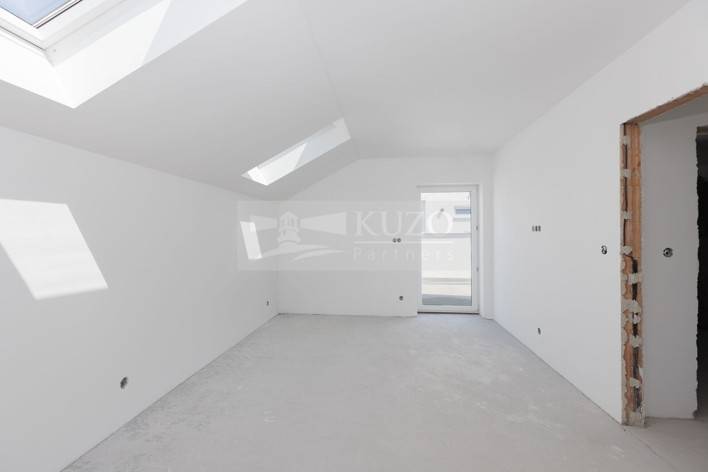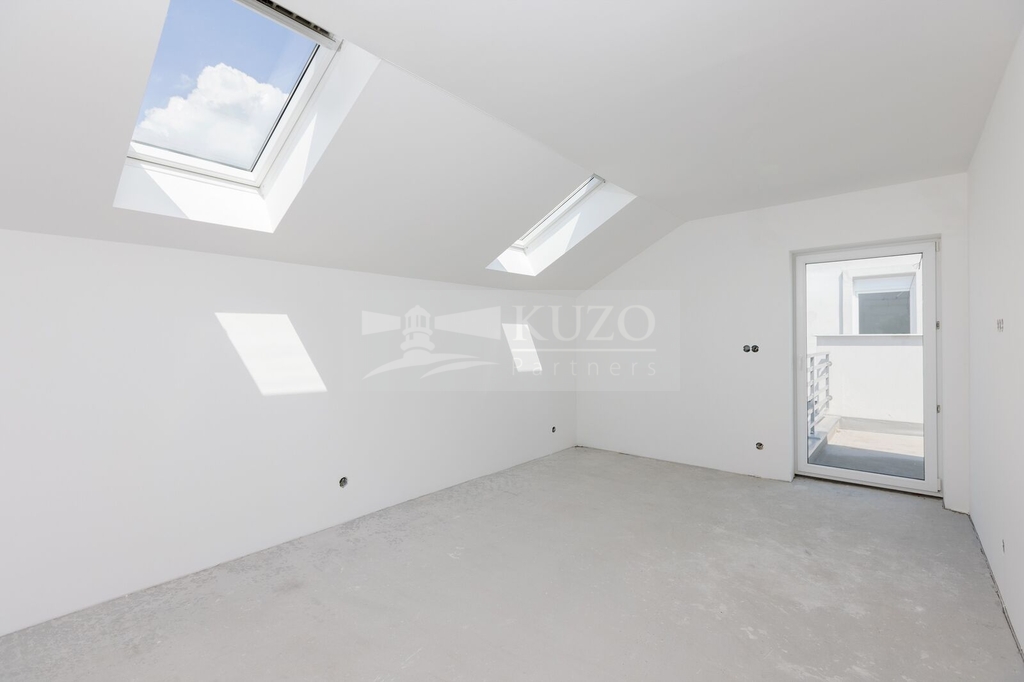 Po schodišti do prvního patra, jsou dva samostatné pokoje o výměře přes 10 m² a ložnice s téměř 20 m², koupelna s vanou a toaletou, dále navíc zmiňovaná prostorná terasa o užitné ploše 29 m².