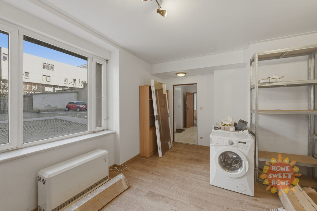 Jedná se o tři prostorné neprůchozí místnosti, prostoru na kuchyňku, dvě toalety a předsíň. Topení a ohřev vody zajišťuje plynový kotel, nová plastová okna. V místnostech jsou plovoucí laminátové podlahy, v ostatních prostorách je dlažba. K dispozici jsou dvě vyhrazená parkovací stání ve dvoře. V současné době je možné k bytové jednotce přikoupit sklepní místnost.