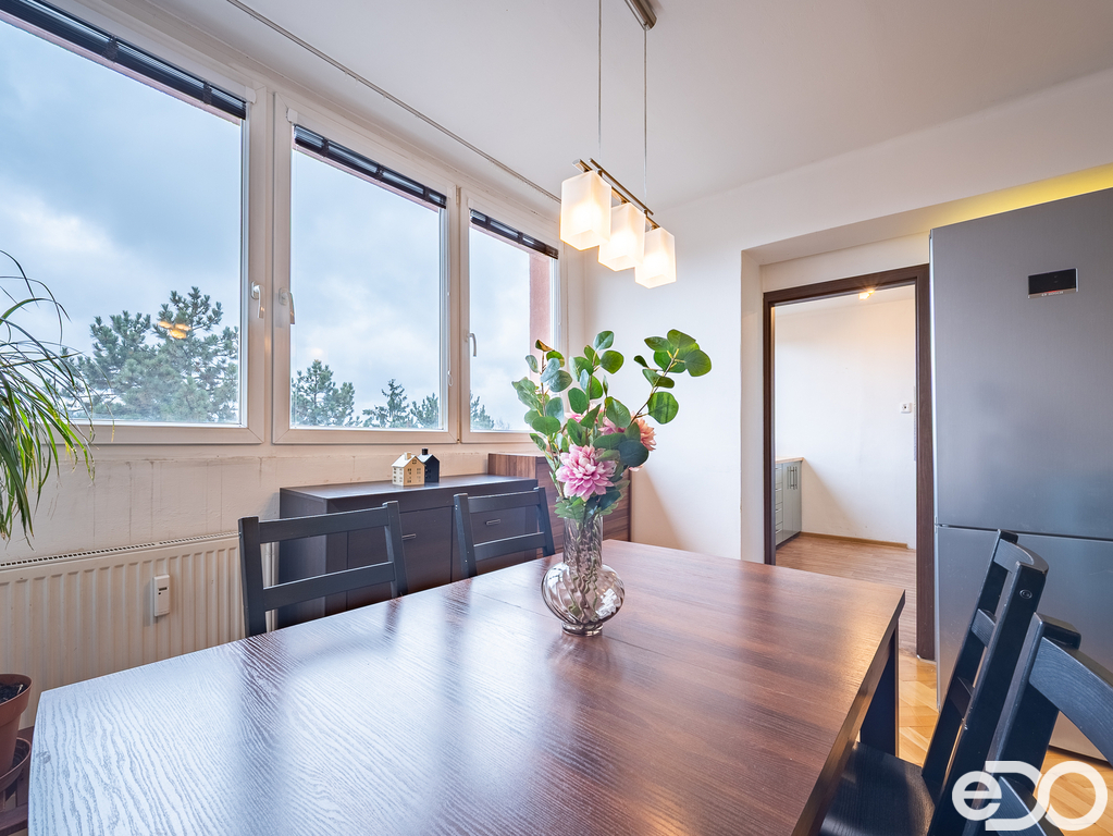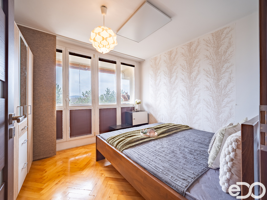 Byt se nachází ve 4. nadzemním podlaží panelového domu bez výtahu a nabízí praktické dispoziční řešení vhodné pro mladou rodinu. Díky dvěma lodžiím je byt krásně prosvětlený a působí vzdušně po celý den. K bytu náleží také sklep, který poskytne dostatek úložného prostoru.