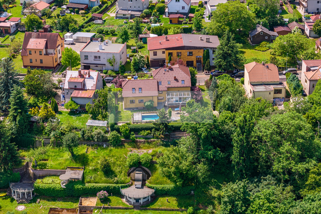 Za domem se rozkládá vzrostlá a pečlivě udržovaná zahrada, se zahradním altánem a druhou terasou, na kterou navazuje zahradní jezírko.. Najdete zde venkovní vyhřívaný bazén, ideální pro osvěžení během horkých letních dnů nebo pro večerní plavání pod hvězdami, zahradní altán s terasou, okrasné zahradní jezírko a různá zákoutí pro odpočinek.