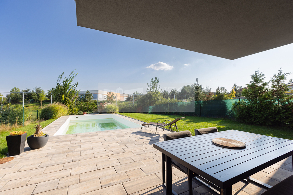Zahrada a bazén - Vaše soukromá oáza: Soukromá zahrada je vaší oázou klidu, kde si můžete vychutnat sluneční paprsky, pěstovat vlastní bylinky nebo si jen tak odpočinout s knížkou v ruce. A co teprve osvěžující koupel ve vlastním bazénu (40 m2) během horkých letních dnů. Také Garáž propojená se zahradou zvyšuje komfort bydlení a navíc poskytuje bezpečné parkování pro vaše vozidlo.