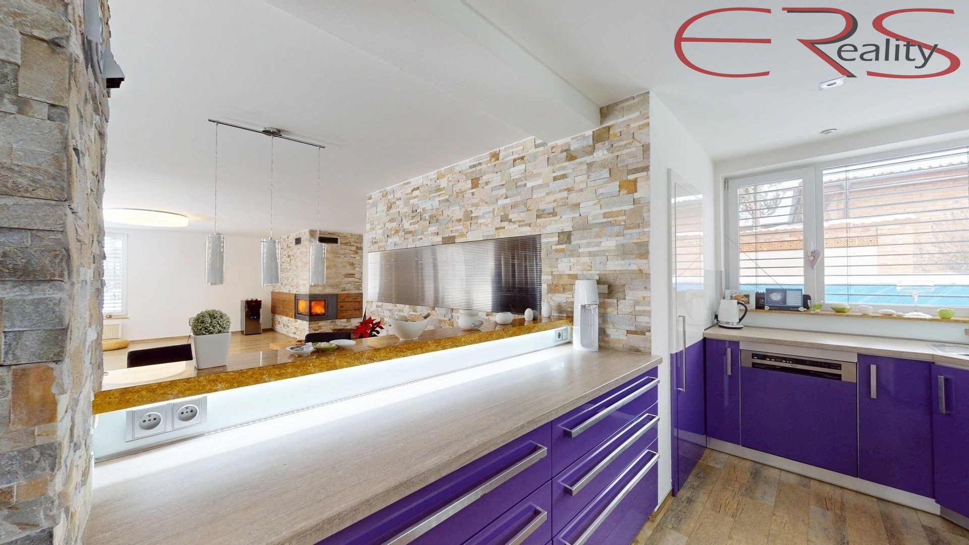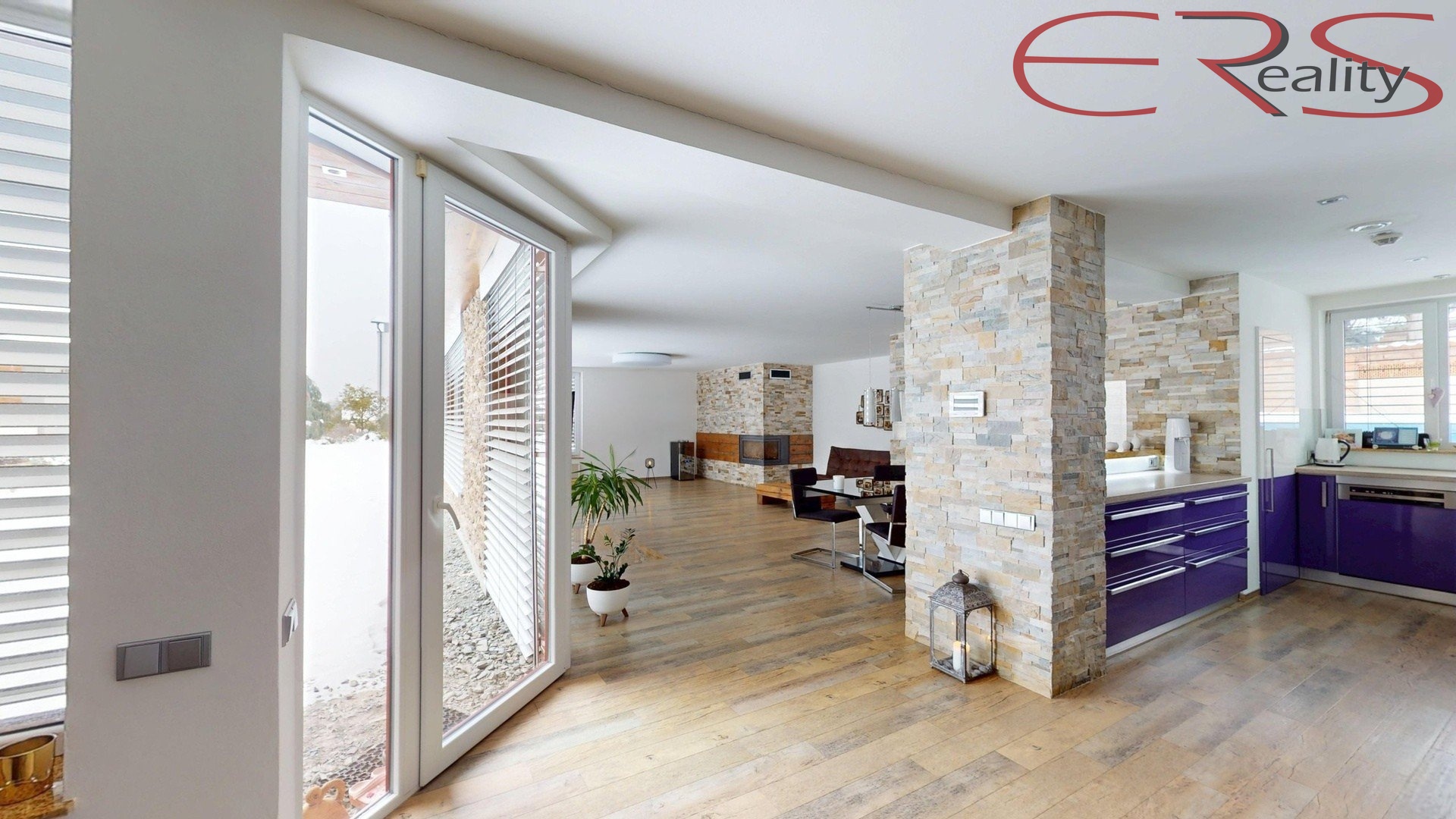 Srdcem domu je obývací pokoj s kuchyní o ploše 84 m², kde nechybí krb se vzduchovody pro efektivní rozvod tepla do dalších částí domu. Komfort doplňuje klimatizace (chlazení i vytápění) a zabezpečovací systém. Koupelny jsou vybaveny podlahovým vytápěním, které je samostatně řízeno termostaty včetně dálkového ovládání.