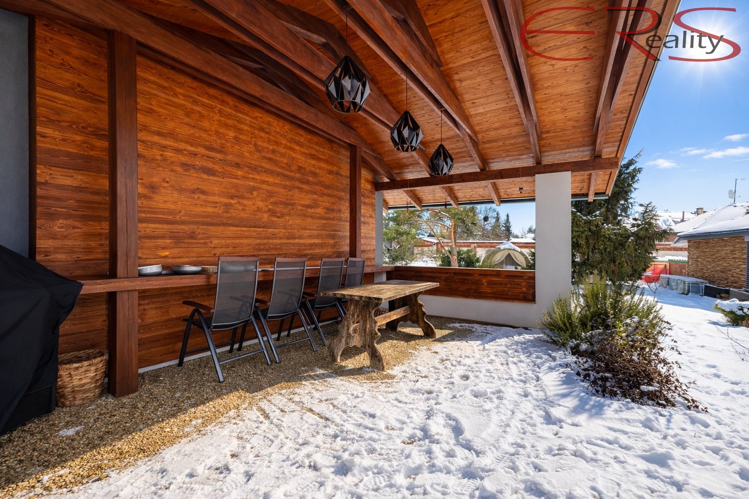 Součástí nemovitosti je samostatný wellness objekt z roku 2021 o zastavěné ploše cca 110 m², navržený jako plnohodnotné zázemí pro celoroční odpočinek i zábavu. Už z exteriéru zaujme kombinací dřeva a velkých prosklených ploch, navazujícím letním posezením s grilem a praktičností provozu (ve sklepě je technologie cca 8 m²).