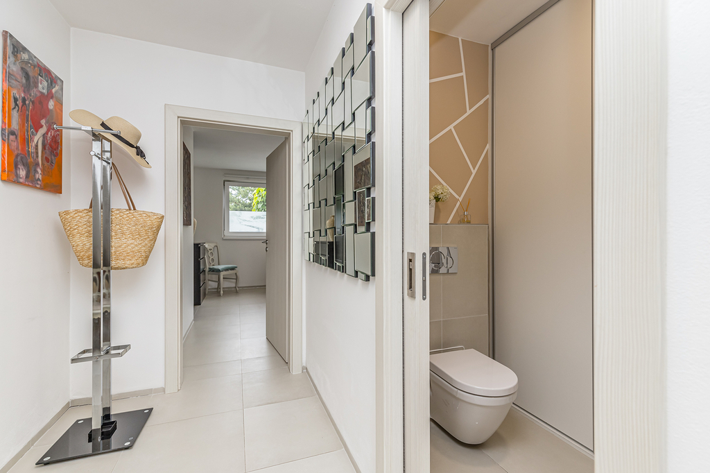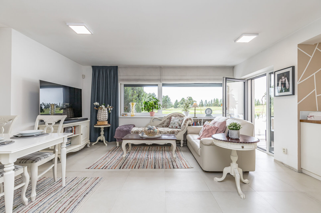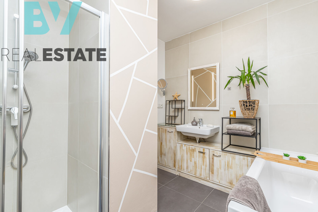 Ve výhradním zastoupení majitelů uvádíme do nabídky k prodeji rodinný dům nacházející se v bezprostřední blízkosti vodní plochy 17té jamky golfového hřiště v Michalovicích u Mladé Boleslavi. Poloha domu je unikátní, nabízí majitelům nádherné výhledy přímo na perfektně upravené golfové hřiště s nekonečným výhledem do zeleně. Dům disponuje celkovou podlahovou plochou 129 m2 + garáž a sklad a pozemkem 188m2. Srdcem domu je velký obytný prostor s jídelnou otevřeným konceptem propojený s kuchyní, rozšířený o vstup na terasu. Zde si v klidu vypijete ranní kávu, budete si vychutnávat klidný večer se sklenkou vína při sledování západu slunce. Atmosféru vám ještě zpříjemní bezprostřední blízkost vodní plochy, kdy ke břehu připlouvají ryby, které můžete krmit téměř z ruky. V přízemí se dále nachází manželská ložnice s vlastní koupelnou se sprchovým koutem a toaletou, technická místnost s umyvadlem a toaletou, předsíň, sklad sloužící k ukládání potravin i sezónních věcí a garáž. Po schodišti vystoupáte do patra, kde jsou dva samostatné pokoje, koupelna se sprchovým koutem, vanou a toaletou. V horním patře mate možnost využívat dvě terasy. První je součástí jedné z ložnic a nabízí dechberoucí výhled na golfové hřiště. Druhá terasa naopak poskytne majitelům naprosté soukromí k opalování a relaxaci s výhledem do krajiny i na horu Ještěd. Při stavbě a vybavení domu byly použity velmi kvalitní, moderní materiály: okna komorová 3 sklo, přeokenní rolety, plně vybavená kuchyňská linka včetně spotřebičů. Při navrhování interiéru, majitelé kladli velký důraz elegantní barevné provedení celého domu. Laděním do světlých barev, dům působí světlým a vzdušným dojmem. Vytápění domu i ohřev celé vody je zajištěn tepelným čerpadlem s rozvodem do podlahového topení, dům má rekuperaci a energetická náročnost budovy je ve třídě "A"- pasivní dům. Měsíční náklady na dům jako celek jsou 3 800,- Kč/měsíc. V obývacím pokoji jsou instalována krbová kamna, která mohou sloužit k vytápění mimo topnou sezónu. Pro větší komfort je instalováno moderní zabezpečovací zařízení. V domě je k dispozici vytápěná garáž, parkování pro další dva vozy je před domem.Dům je umístěný v zástavbě rodinných domů slepé ulice, což poskytne majitelům klidné a nerušené bydlení. Dům je připojen na obecní vodovod, kanalizaci a elektřinu. V celé lokalitě jsou pouze rodinné domy, součástí golfového hřiště je hotel a restaurací a doplňkovými službami. Dostupnost: doprava silniční s MHD, občanská vybavenost - nová mateřská škola v Michalovicích, nejbližší základní školy ZŠ Debř, ZŠ Dalovice; kompletní občanská vybavenost (školství, zdravotnictví , bankovní a jiné služby, obchodní síť a zaměstnanost ) poskytuje město Mladá Boleslav. V Michalovicích můžete navštívit také zříceninu hradu, kde se v letním amfiteátru pořádají kulturní akce. Bydlení zde ocenění nejen milovníci golfu, ale všichni, kteří chtějí být na dosah velkému městu, přesto preferují klid, dostatek zeleně, možnosti procházek, i sportování v přírodě.