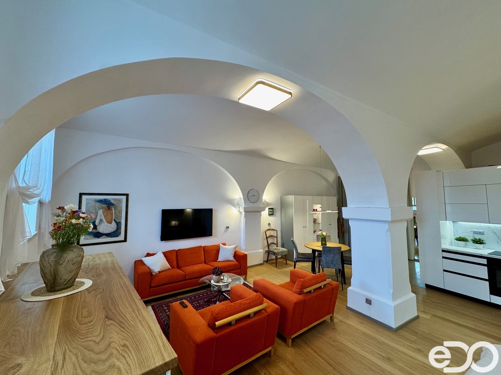 Byt je nadstandardně zařízený a nabízí velmi příjemné a reprezentativní bydlení. Dominantou je velký, světlý obytný prostor s moderní kuchyňskou linkou a dostatkem místa pro obývací i spací část. Interiér je vybaven kvalitním nábytkem a spotřebiči, takže se můžete bez starostí ihned nastěhovat.