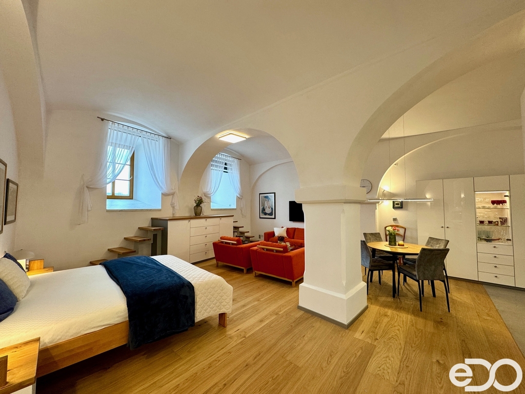 K pronájmu nabízíme prostorný byt o dispozici 1+kk a podlahové ploše 65 m², který se nachází v samém srdci historického centra města na Staroměstském náměstí v Mladá Boleslav.