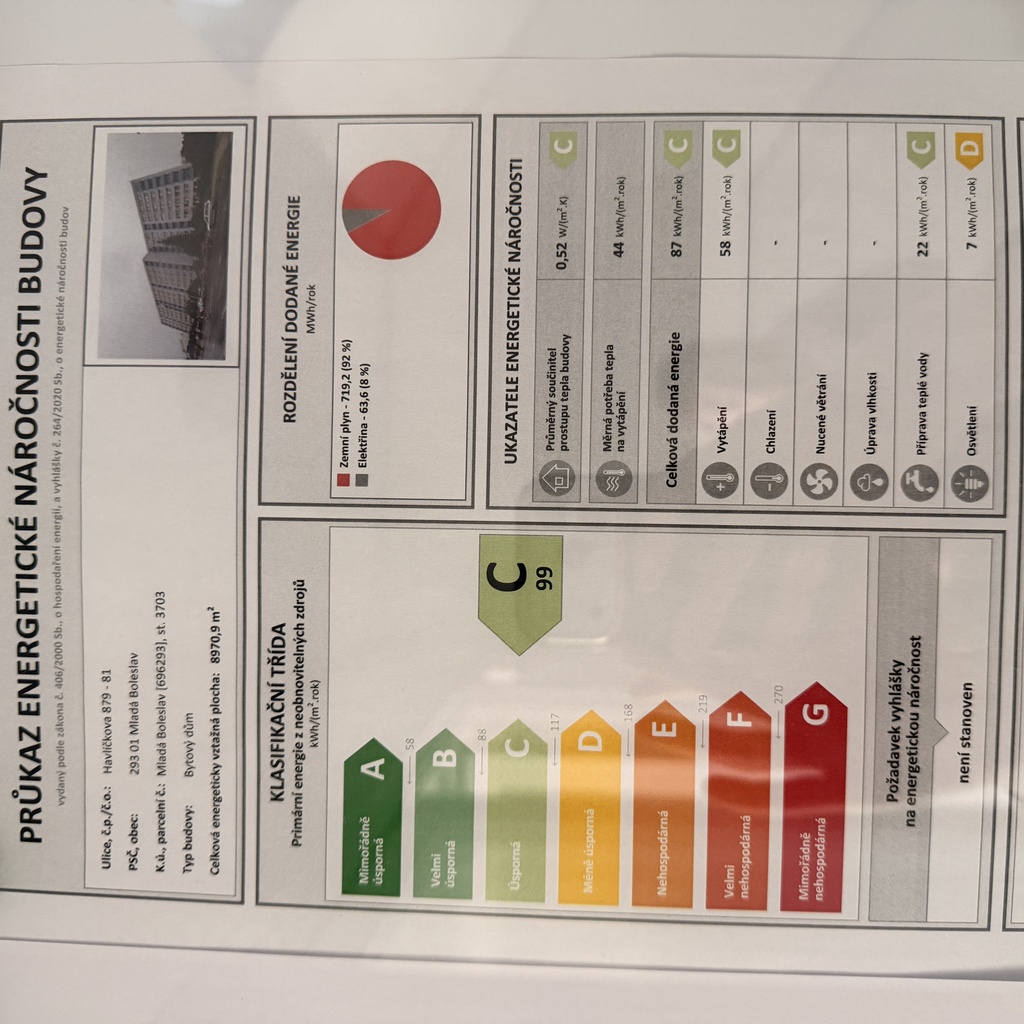 Ukazatel energetické náročnosti budovy:99 kWh/m²