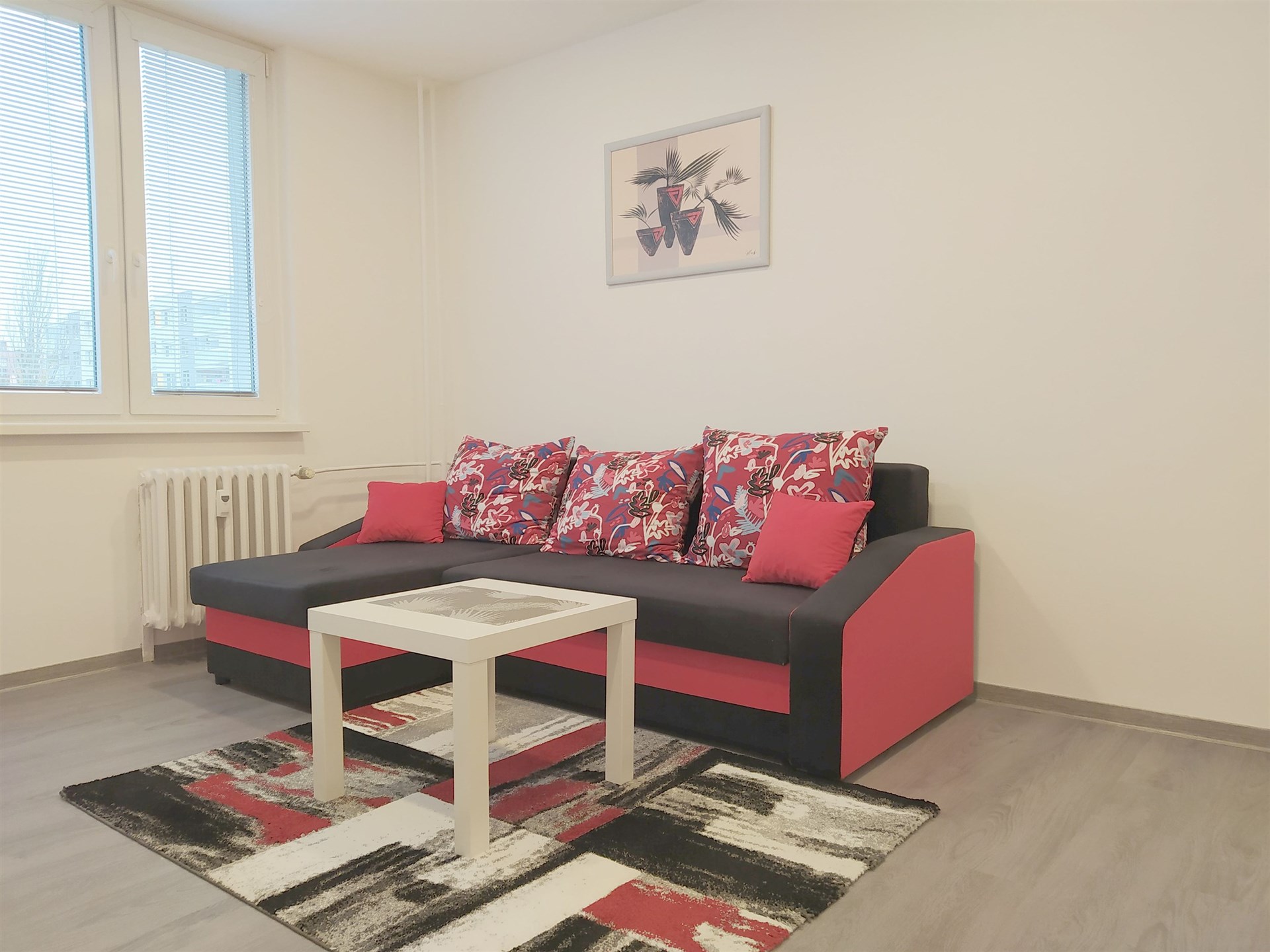Byt se pronajímá kompletně vybavený novým nábytkem, vč dvoulůžka, lednice a pračky.