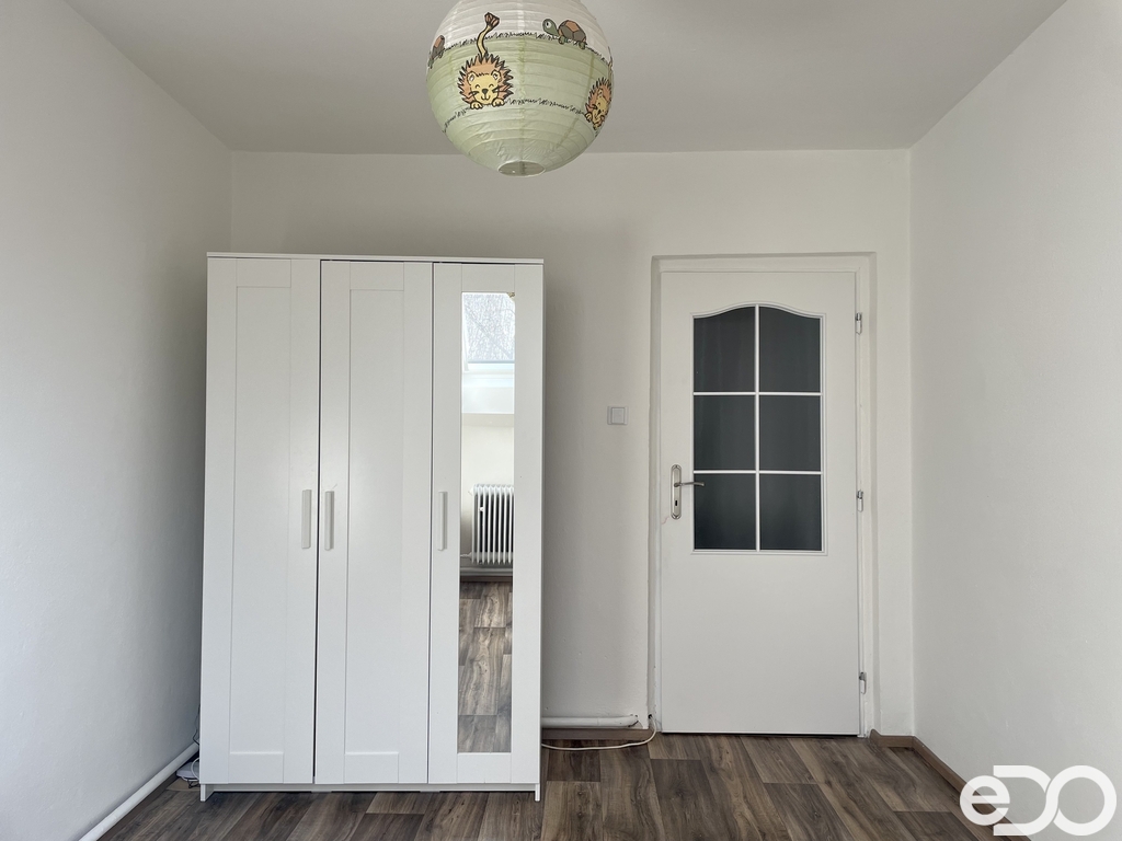 Byt zaujme svou praktickou a velmi dobře řešenou dispozicí, která nabízí dostatek prostoru i soukromí. K dispozici je obývací pokoj se sedací soupravou a úložným prostorem, dvě samostatné ložnice se skříněmi, částečně vybavená kuchyně s kuchyňským koutem, dále koupelna s vanou, samostatné WC a prostorná chodba také vybavená úložným prostorem.
