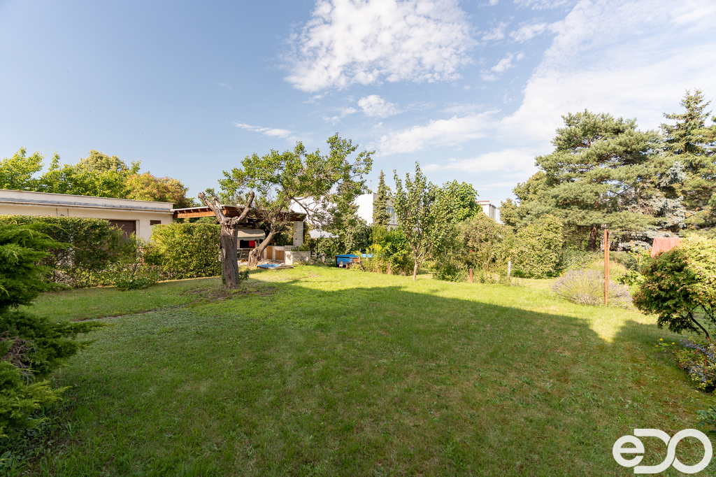 Zahrada je osázena vzrostlými stromy a nabízí bohatou úrodu – k dispozici jsou jabloně, broskvoně i keře s malinami a ostružinami. Součástí je také pergola pro příjemné posezení a bazén, který oceníte zejména v letních měsících.