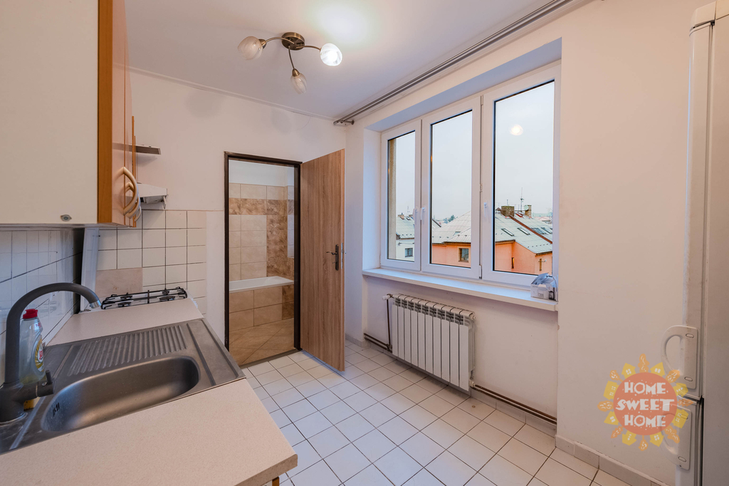 Byt sestává ze tří pokojů, kuchyně s kuchyňskou linkou s plynovým sporákem, troubou, lednicí s mrazákem, koupelny s vanou, samostatné toalety a předsíně. Byt byl nedávno revitalizován, topení a ohřev vody zajišťuje plynový kotel, nová plastová okna. V pokojích jsou plovoucí laminátové podlahy, v ostatních prostorách je dlažba.