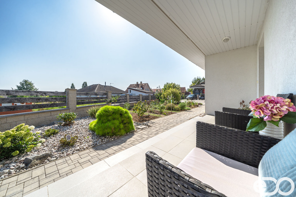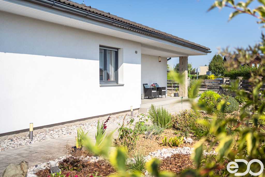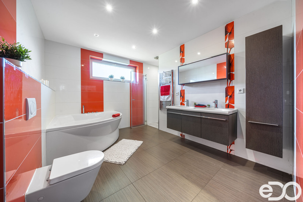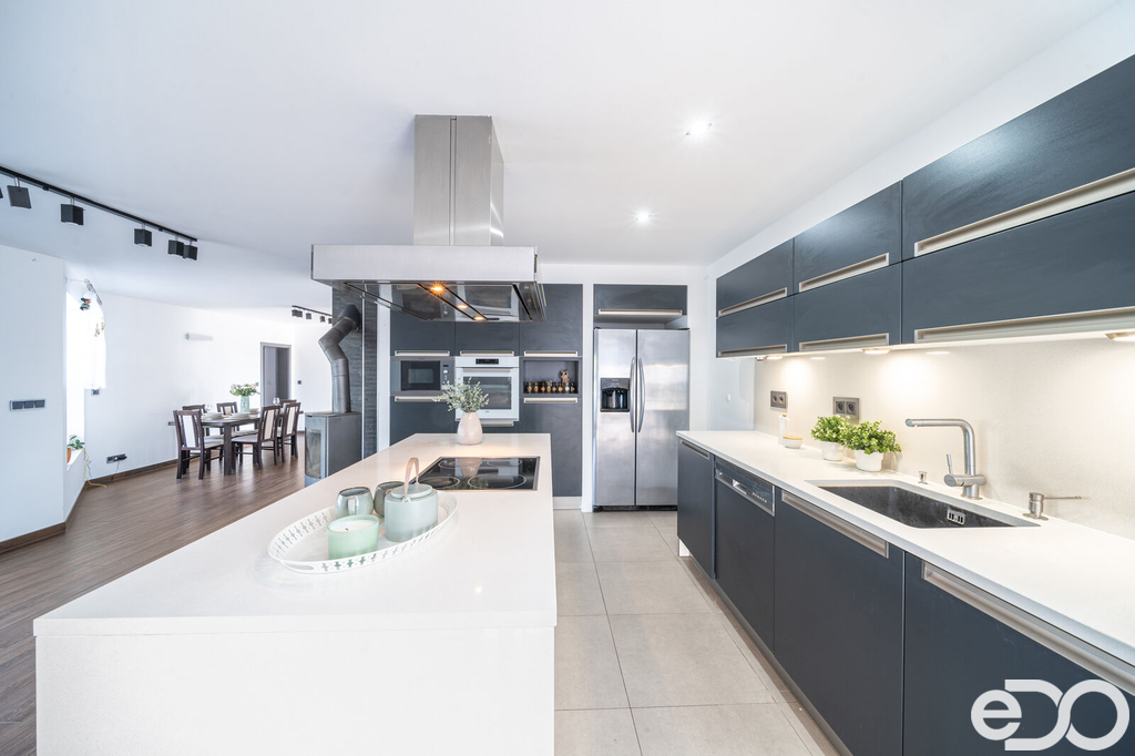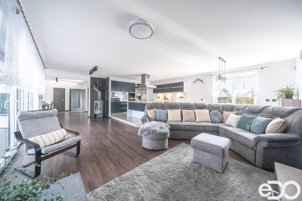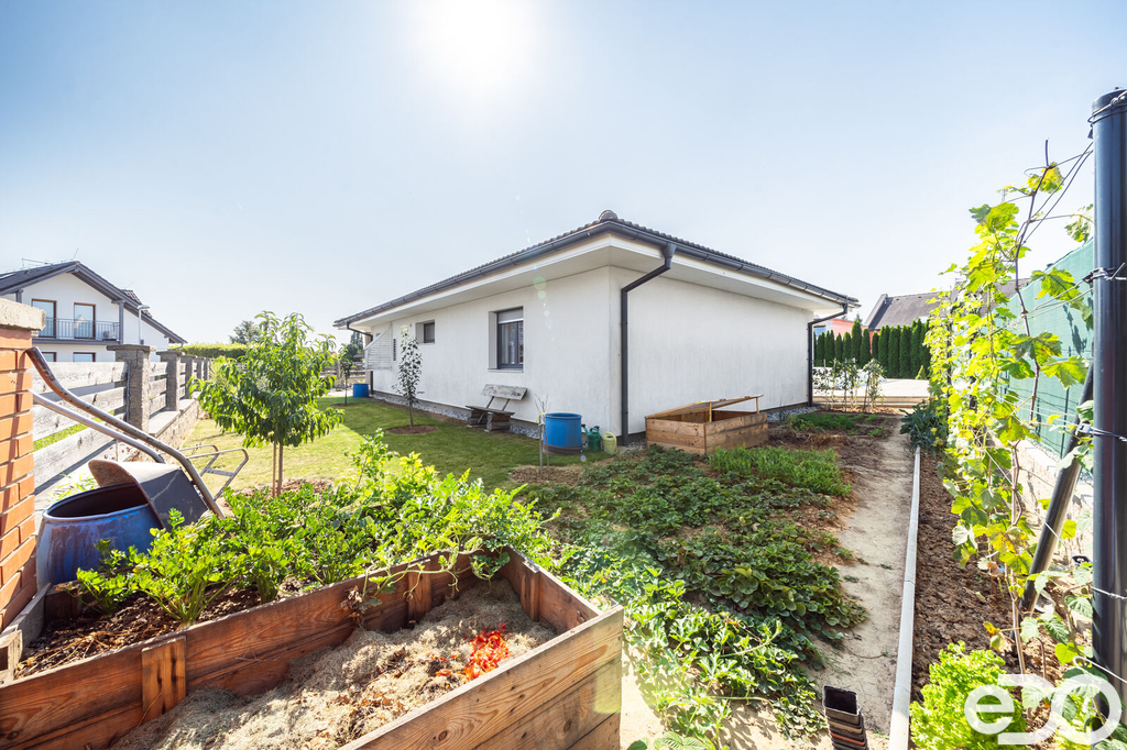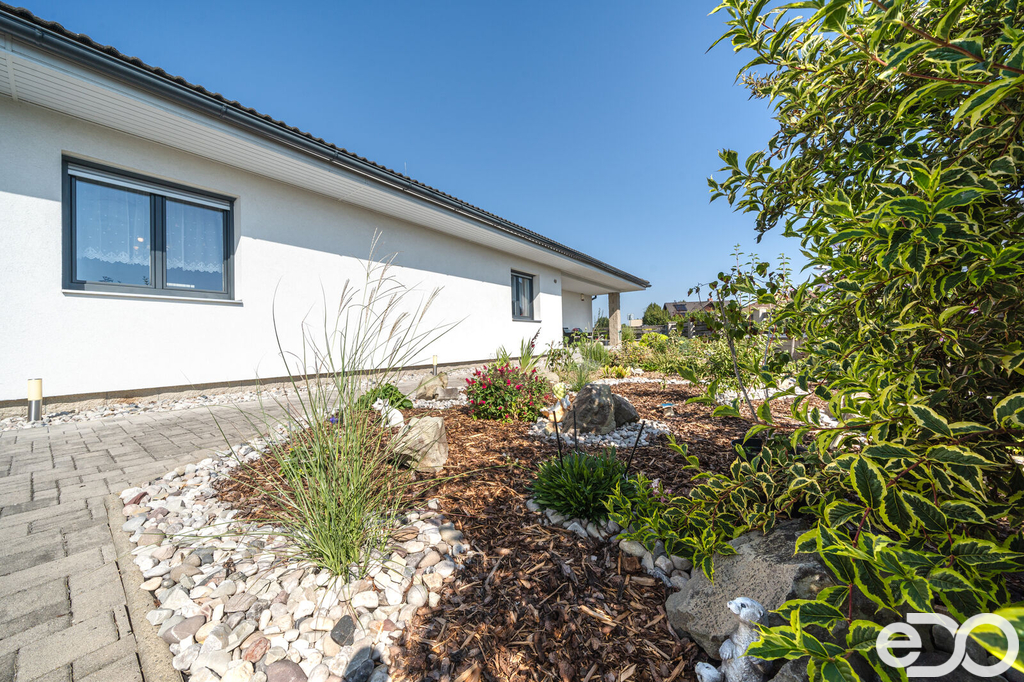 Vytápění domu je zajištěno podlahovým topením na tepelné čerpadlo a solárním systémem na ohřev vody. V domě je také krb. Vysoký nadstandard domu potvrzují i elektricky ovládané venkovní žaluzie. Dalším obrovským plusem je prostorná garáž s dílnou. Zde je myšleno i na zimní časy a je i zde podlahové vytápění. V dílně také nalezneme toaletu, spíž a saunu. Auta je možné parkovat v garáži nebo na krytých parkovacích stáních. Zahrada je z části okrasná i užitková.