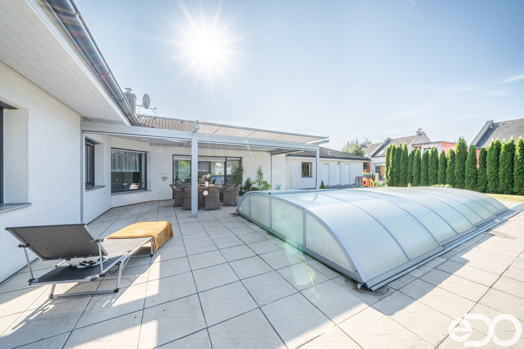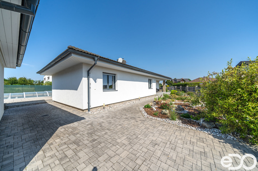 Rád bych vám tímto nabídnul velmi prostorný bungalov o dispozici 5+kk s prostornou garáží a bazénem. Dům se nachází v žádané lokalitě Michalovice u Mladé Boleslavi. Podlahová plocha domu přes 150 m2 a dispozice 5+kk přináší velmi velkorysé bydlení. Prostorný obývací pokoj s kuchyní je skvělým prostorem, ve kterém budete trávit nejvíce času. Z obývacího pokoje se dostanete jednoduše na krytou terasu s bazeném. Dále nalezneme v domě 3 ložnice, pracovnu a technickou místnost. Samozřejmostí je samostatná toaleta a koupelna s vanou a sprchovým koutem. V ložnici také nalezneme šatnu.