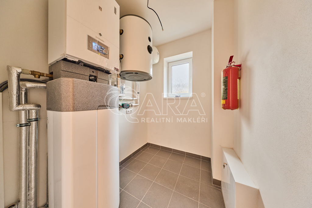 * Technologie: vytápění i ohřev vody zajišťuje tepelné čerpadlo s podlahovým topením v obou podlažích.