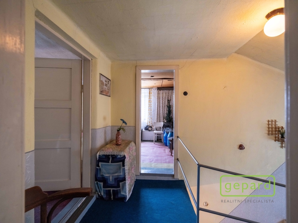 V patře se nachází jeden obytný pokoj a dva půdní prostory, které jsou nyní využívány ke skladování.