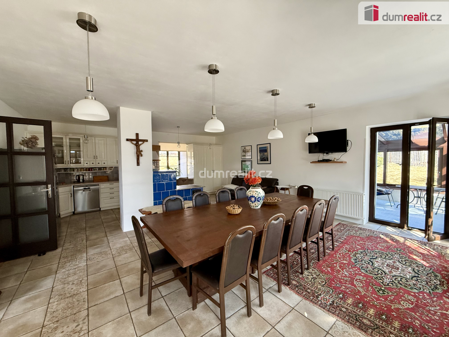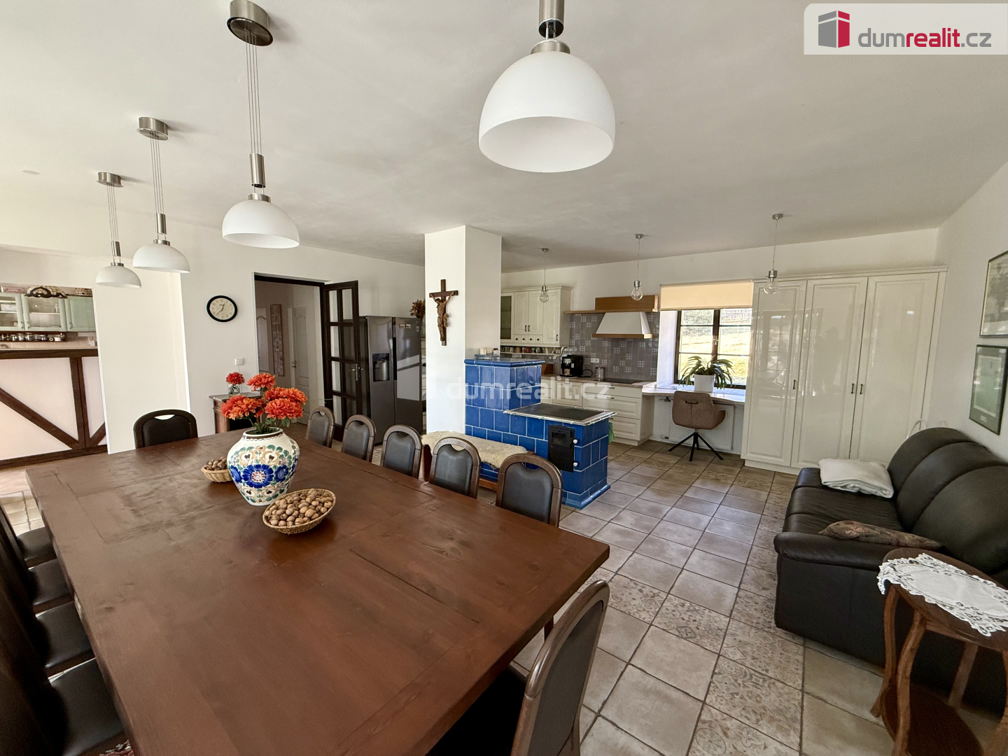 Popis vybavení:Součástí prodeje je veškeré kompletní interiérové vybavení tří samostatně oddělených bytových jednotek vč. kuchyňských sestav, krb v 1.NP, čtyři kompletně vybavené koupelny.