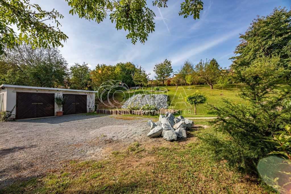 U vjezdu na pozemek je dvougaráž a další plocha na odstavení vozidel.