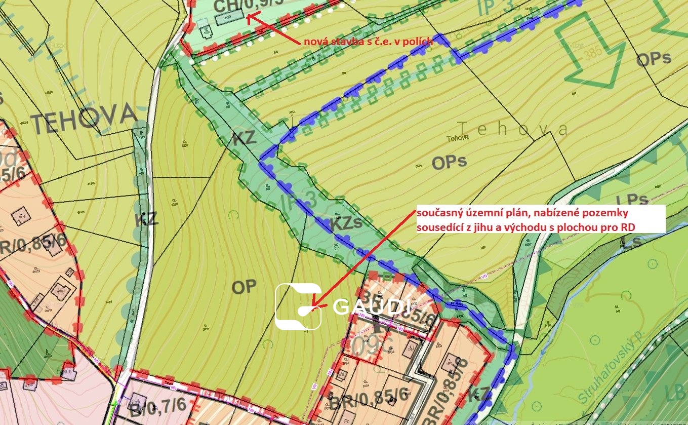 V současné době je větší pozemek veden územním plánem jako OP – orná půda a druhý menší pozemek jako KZ – krajinná zeleň.
