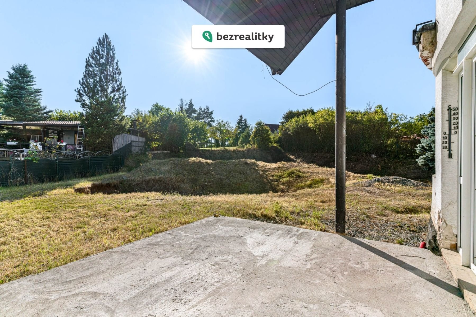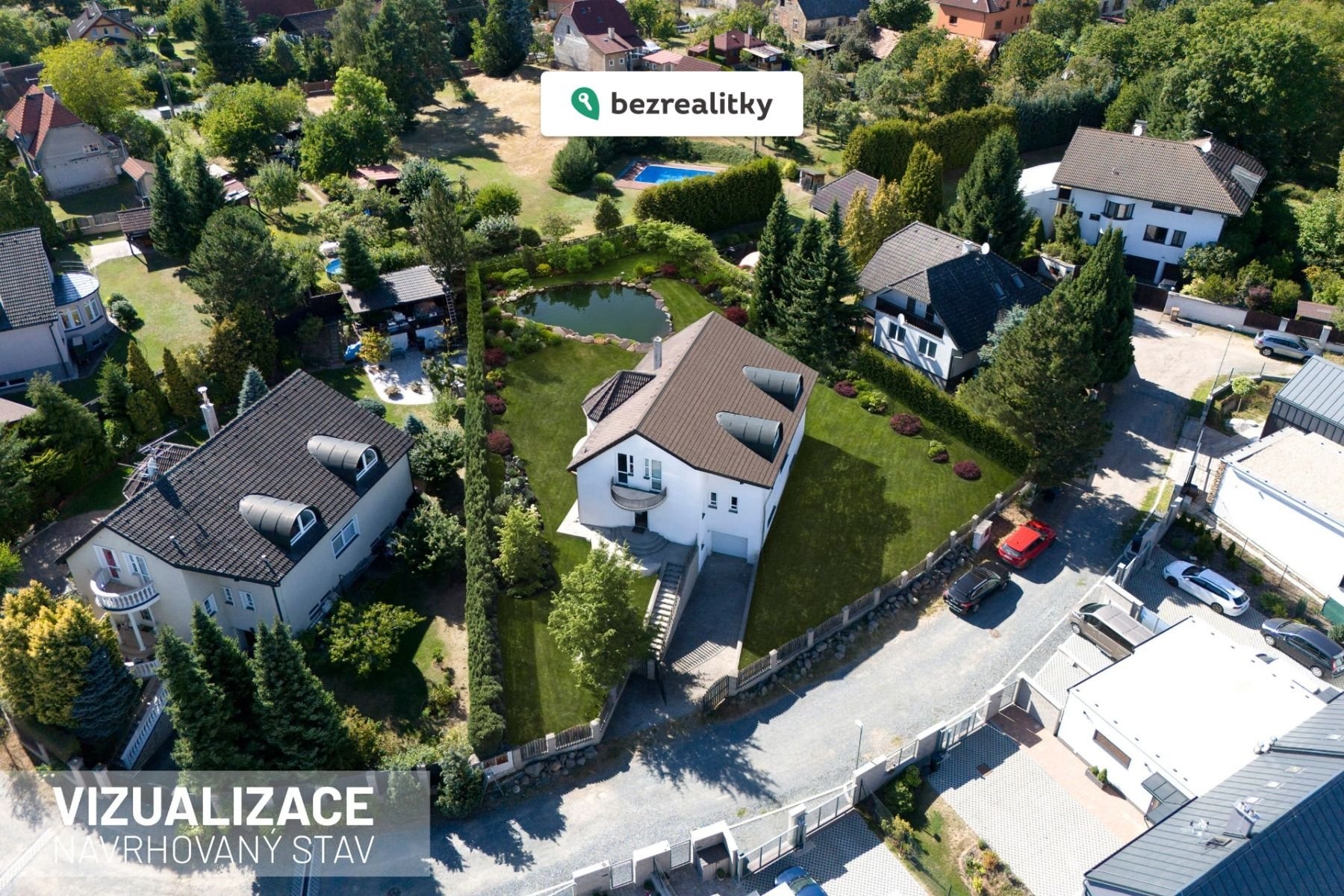 Zahrada se vzrostlými stromy byla navržena zahradním architektem a poskytuje maximální soukromí i prostor pro odpočinek. K dispozici je již připravená jáma pro realizaci bazénu nebo přírodního jezírka dle vašich představ.