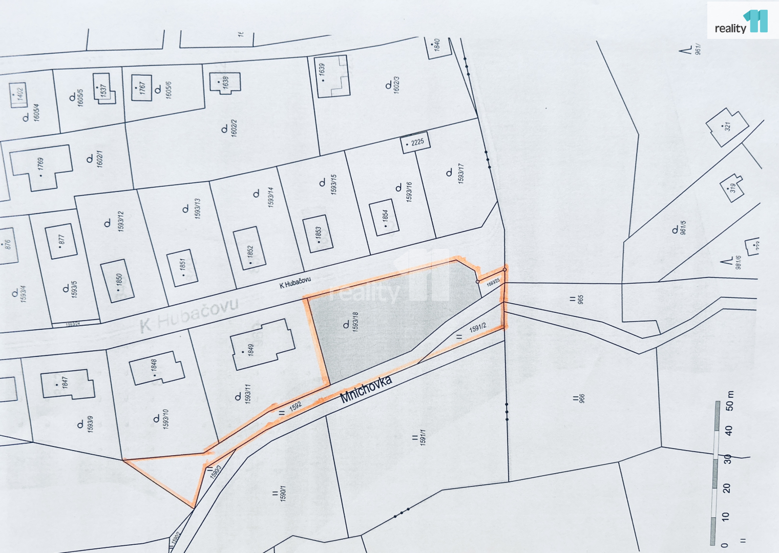Hlavní stavební pozemek o výměře 1 301 m² (parc. č. 1593/18) - zahrada.