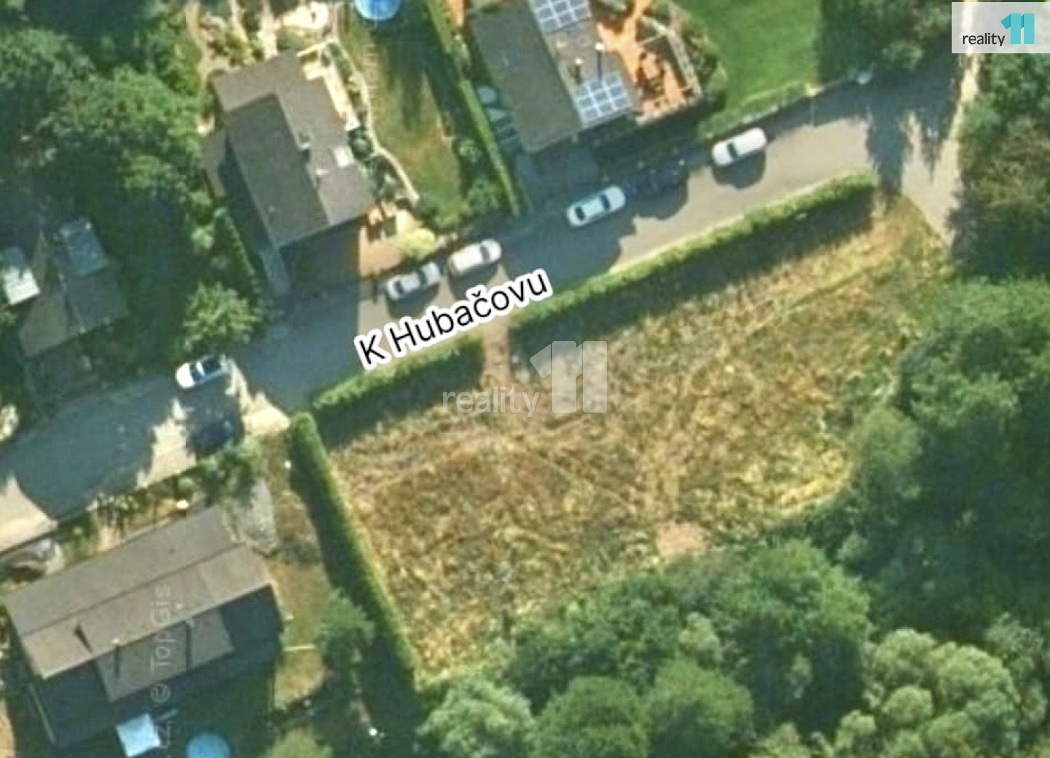 Pozemek se nachází na konci klidné asfaltové ulice K Hubačovu, což zajišťuje maximální soukromí a minimální provoz.