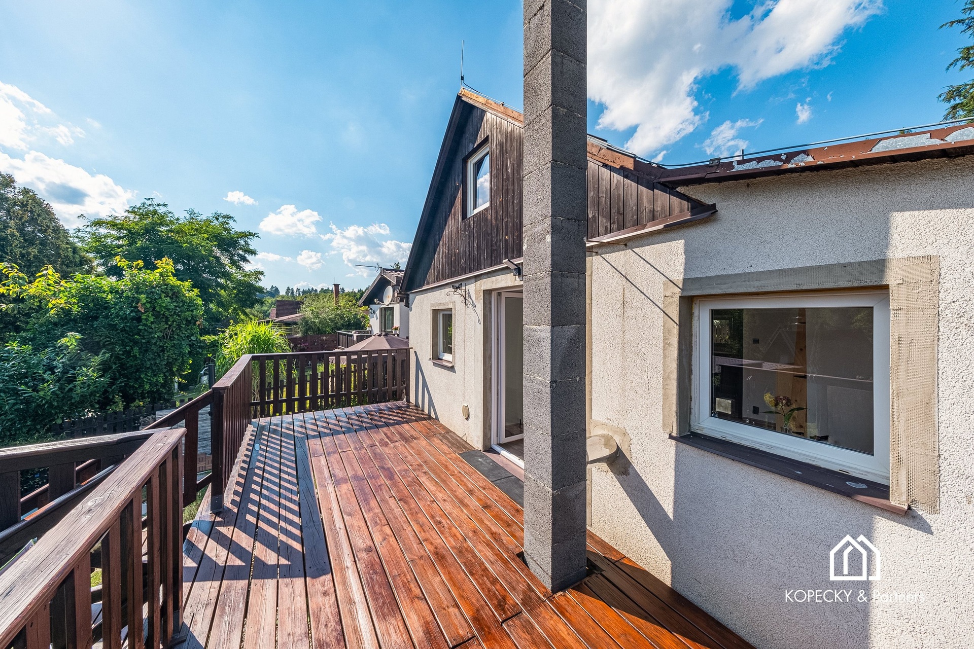 Nabízíme k prodeji prostornou chatu o celkové užitné ploše 98 m², která se nachází v klidné části Mnichovic – Jidaška, jen 25 minut jízdy od Prahy. Nemovitost stojí v mírném svahu s krásným výhledem do údolí a je obklopená zelení, která zajišťuje naprosté soukromí a klid. Lokalita patří k nejvyhledávanějším oblastem v okolí Prahy díky ideální kombinaci přírody, dobré dostupnosti a přátelské atmosféry.