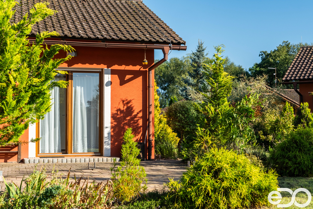 Zahrada o rozloze 789 m² byla navržena a realizována přímo majiteli. Najdete tu vzrostlé okrasné stromy, jezírko, zahradní domek s posezením, ohniště i přístřešek na dřevo. Terasa s výhledem na rybník je ideálním místem pro rodinná setkání i chvíle odpočinku. Celý pozemek je oplocený, takže je bezpečný pro děti i domácí mazlíčky. Je to místo, které vás bude bavit – pro relax, rodinné večery i pěstování vlastního ovoce a zeleniny.