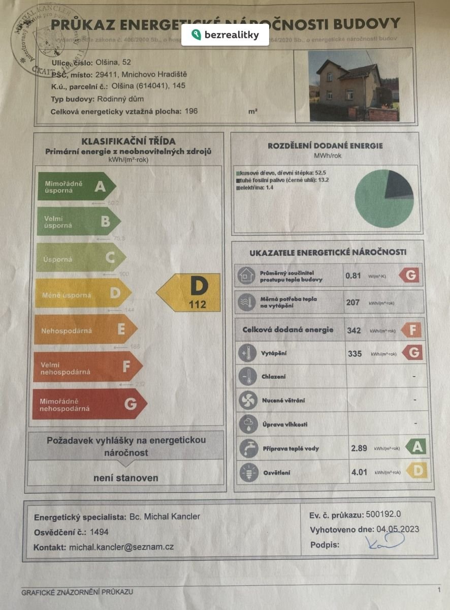 Energetický štítek skupiny D.
