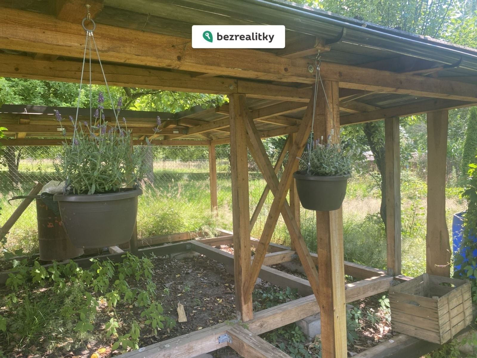 V případě zájmu o větší prostor či větší rozvinutí podnikatelských záměrů je možné přikoupit navazující oplocenou zahradu s velkým vjezdem, s dřevěnou chatkou s kachlovou pecí a krytou terasou s udírnou. Součástí je i velké pódium z modřínových prken, vzrostlé ovocné stromy a kompost. Tato nemovitost je určena výhradně přímým zájemcům o koupi. Na inzerát můžete také reagovat přímo na webu Bezrealitky.