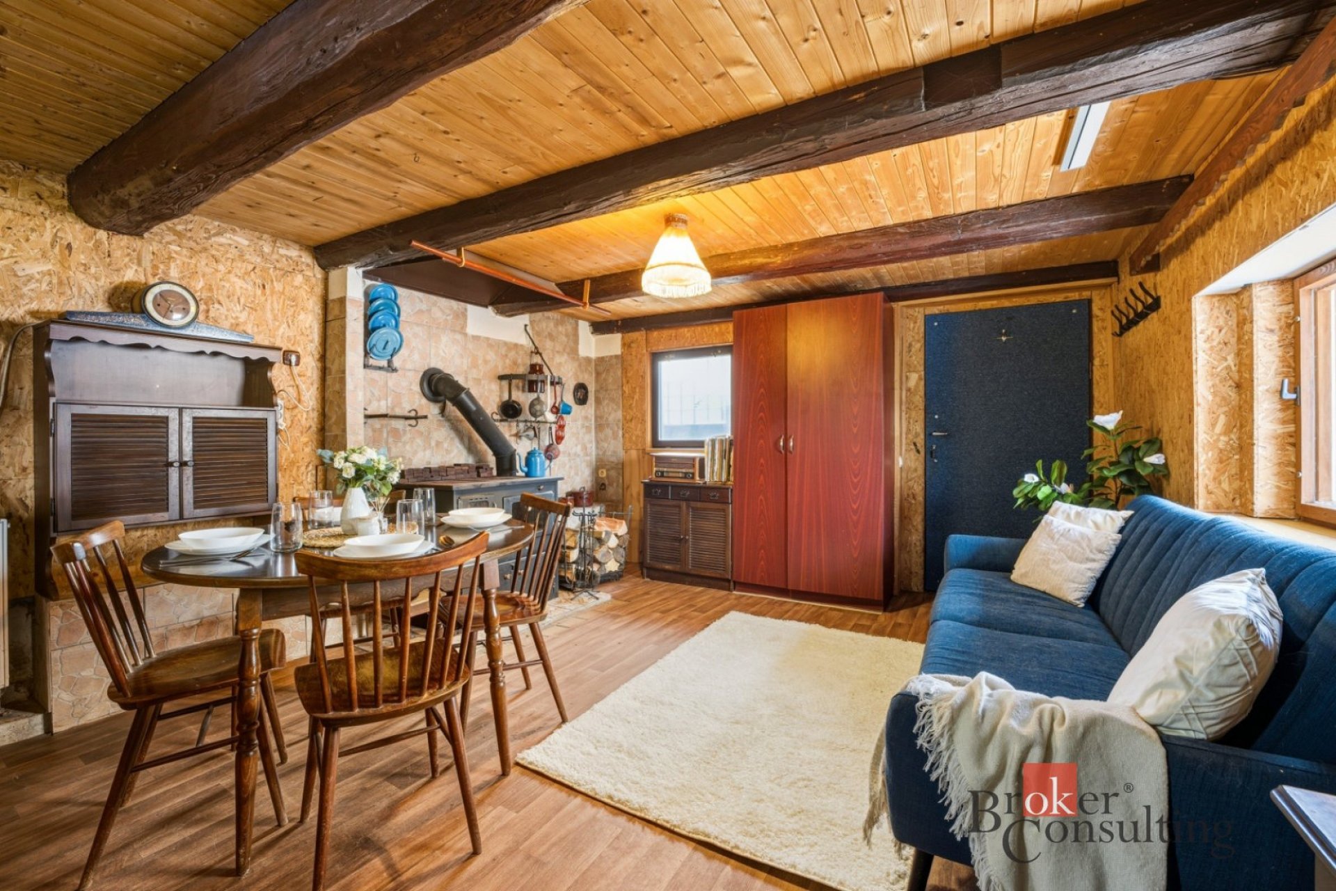 V přízemní části rodinného domu se nacházejí dva identické kamenné sklepní prostory s klenbovým stropem a technická místnost, přes kterou se do domu také vchází. Po schodišti se dostanete do prvního patra, kde se nachází první obytná část, a to obývací pokoj s kuchyní, prostornou ložnicí a samostatnou koupelnou a toaletou. Po dalším schodišti vstoupíte do podkroví, kde jsou dva pokoje, z nichž jeden je neprůchozí a druhý aktuálně slouží jako takový druhý obývací pokoj. Přízemí a první patro nabídnou každý cca 51m2, druhé patro pak 22m2. Dále je součástí pozemku dílna a kůlna o celkové velikosti 50m2 a také samostatně stojící dřevěná 18m2 velká garáž.