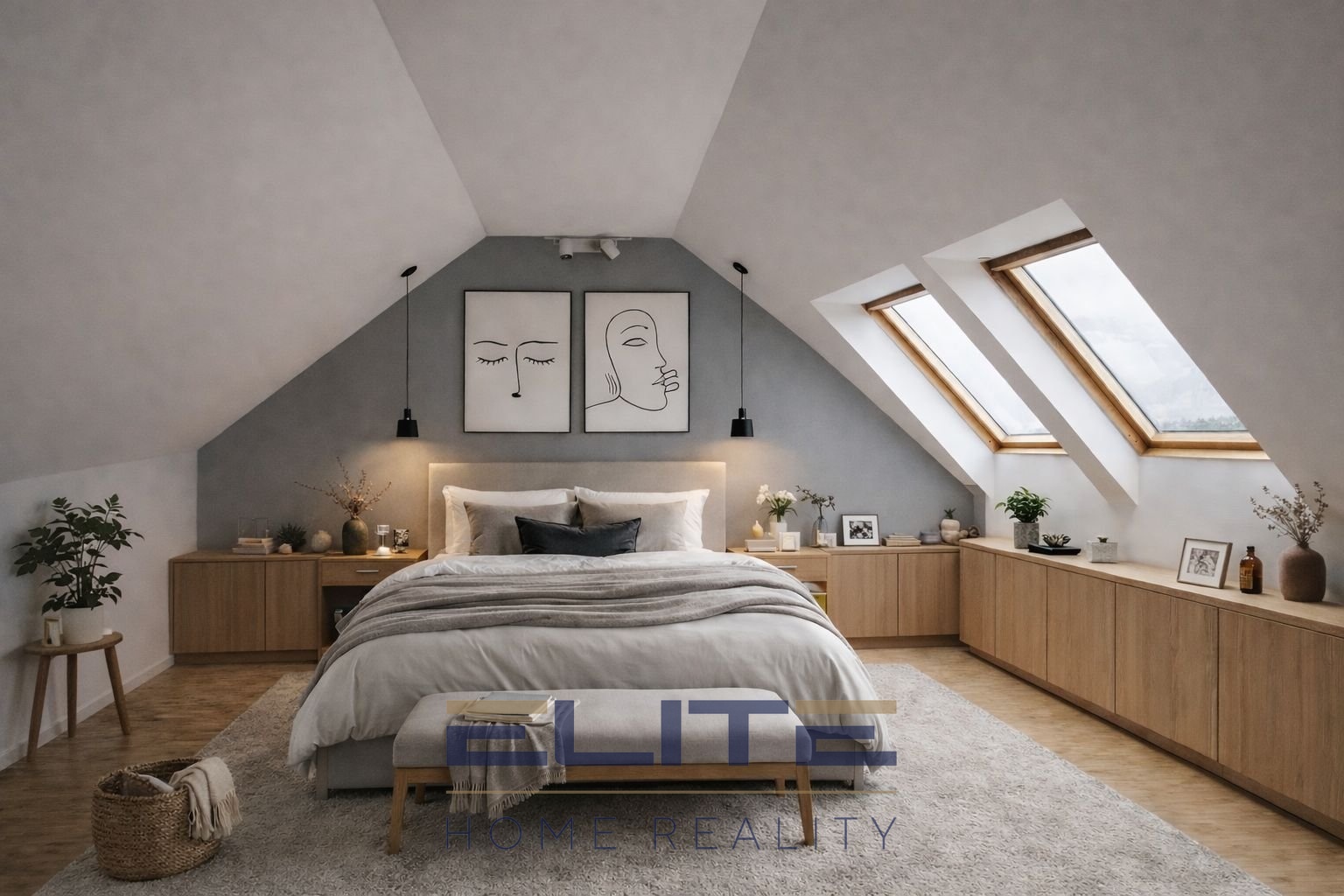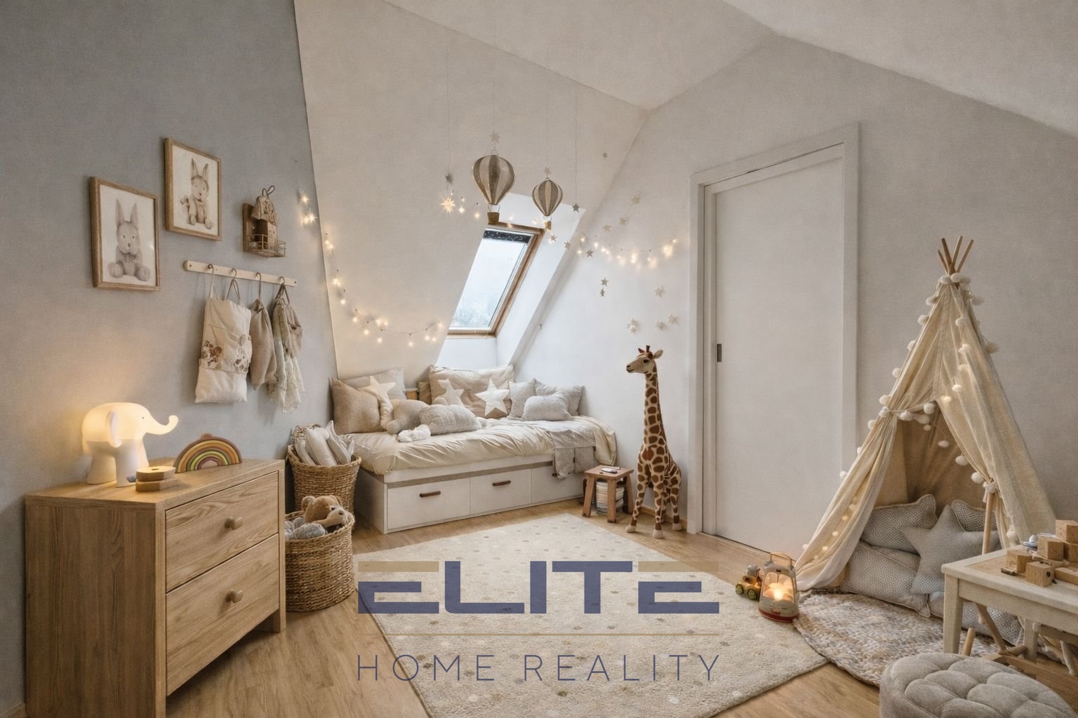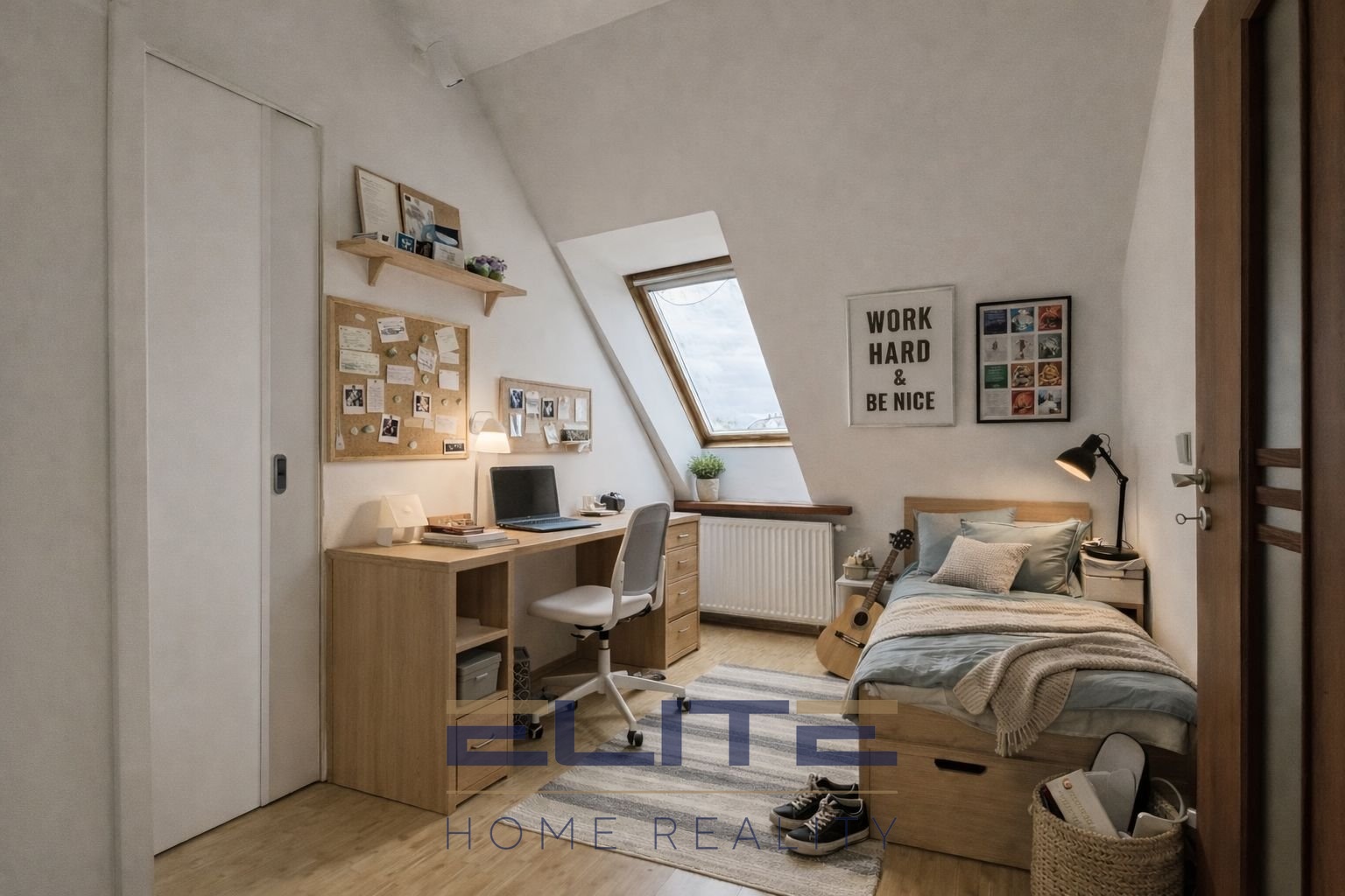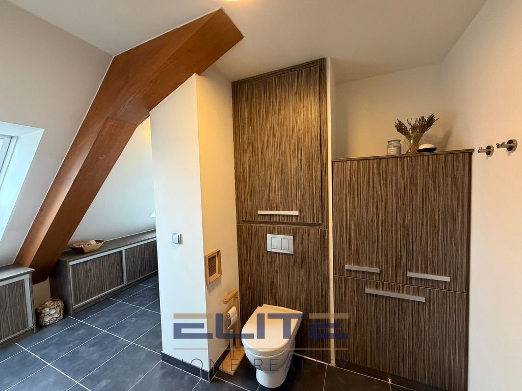 Dispozice mezonetové části je velmi flexibilní a nabízí několik variant využití dle potřeb budoucích majitelů – lze ji ponechat jako dva dětské pokoje, případně jednoduchou úpravou vytvořit jednu ložnici a samostatnou šatnu či pracovnu. K inzerátu jsou zpracovány také vizualizace znázorňující jak variantu dvou pokojíků, tak variantu jedné ložnice, aby si zájemci mohli lépe představit možnosti uspořádání tohoto prostoru.