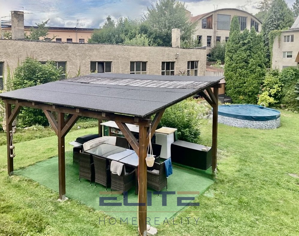 Velkým benefitem je rozsáhlý pozemek u domu o velikosti 557 m², který je v podílovém spoluvlastnictví. Ze zadní části domu v přední části se nachází parkovací plocha pro cca 8 automobilů s vjezdem z ulice přes elektricky ovládanou bránu, ve spodní části pak udržovaná zahrada, která nabízí pergolu, bazén, gril, zahradní domek i okrasnou zeleň – ideální místo pro relax i rodinná setkání nebo sousedská posezení.