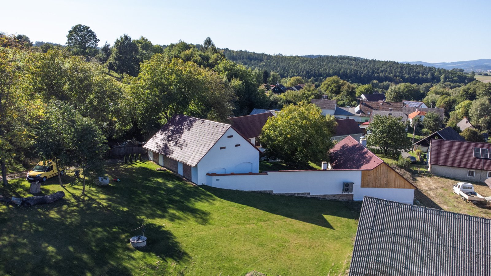 Dům je situován v pěkné, citlivě komponované zahradě s okrasnými keři a dřevinami a nabízí tak prostor tomu, kdo dává přednost klidu, soukromí v krásné a tiché krajině. K usedlosti lze v příadě přikoupit stavební pozemek s výměrou 4.164 m2 včetně staršího domu s č.p.. Velkou zajímavostí tohoto je pozemku je platné vodní právo pro vybudování rybníčku (byl provozován ještě v roce 2010), biotopu a podobně.