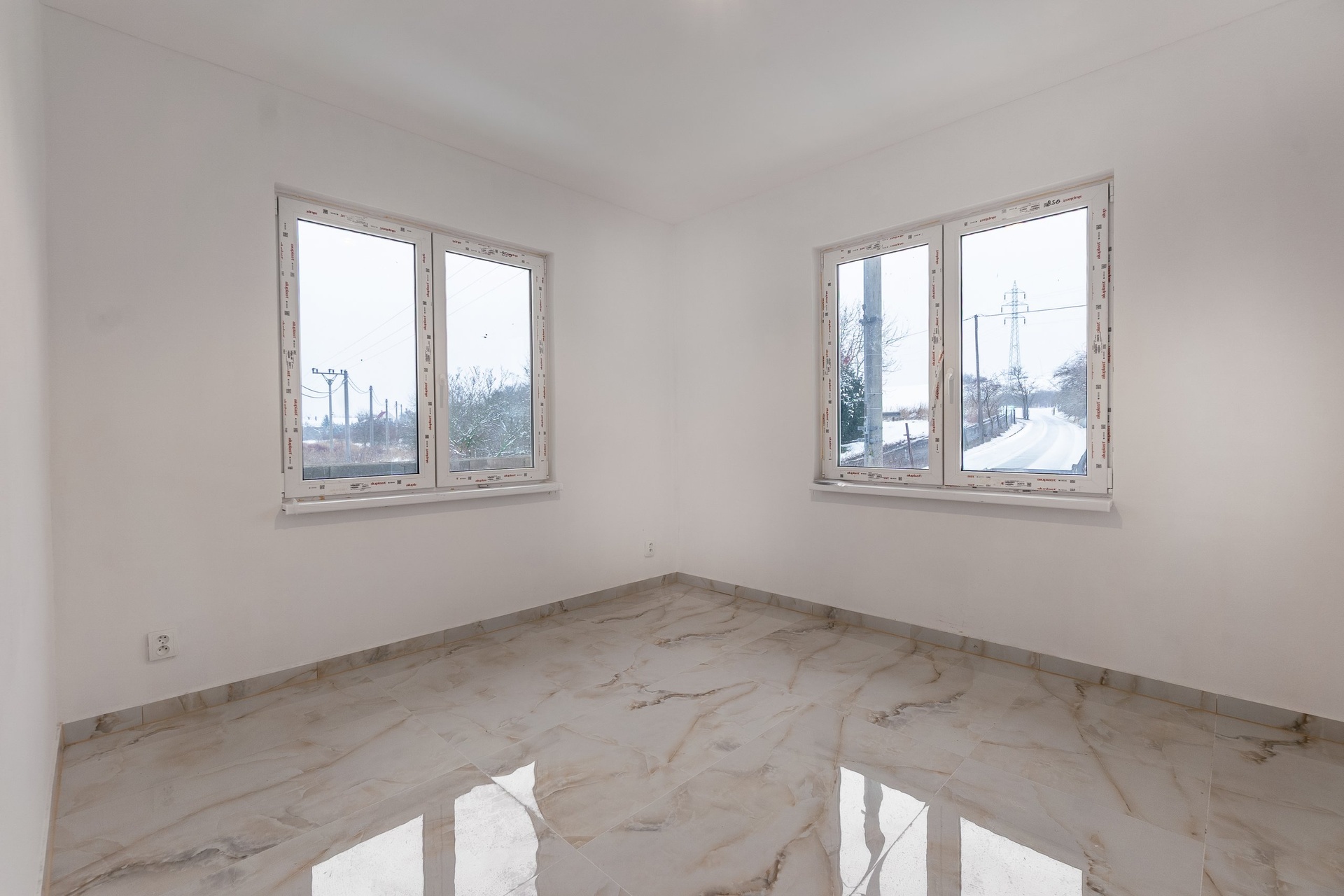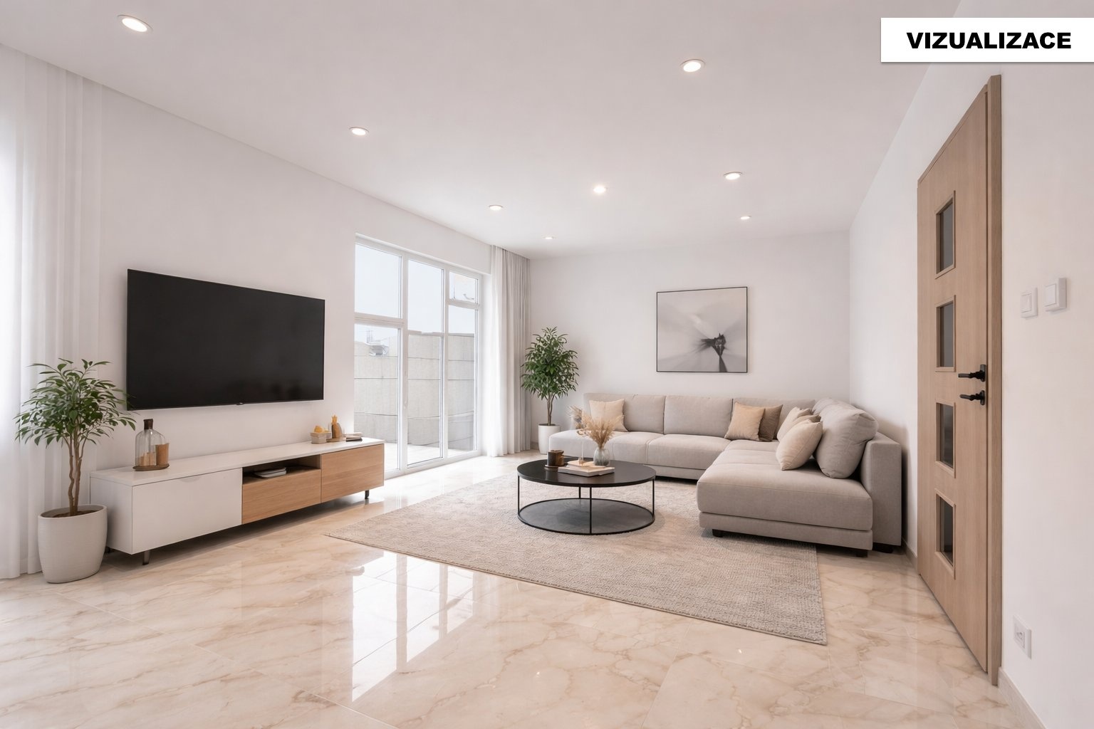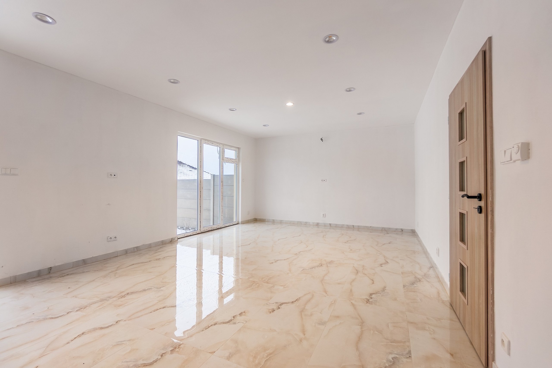 Dům je moderní novostavbou s pečlivě promyšleným interiérem, ve kterém dominují vysoce lesklá podlahová dlažba, jež dodává prostoru eleganci a lehkost.