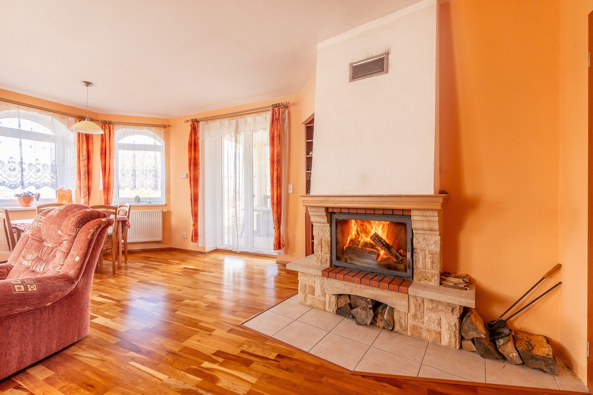 Celý dům je zabezpečen alarmem, což zajišťuje pocit bezpečí a klidu.