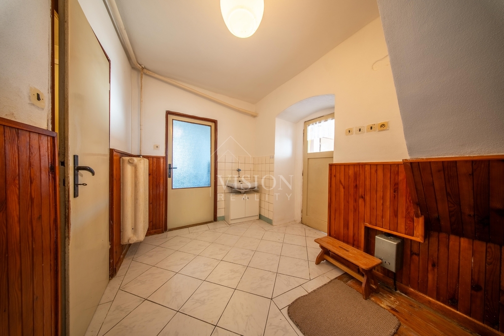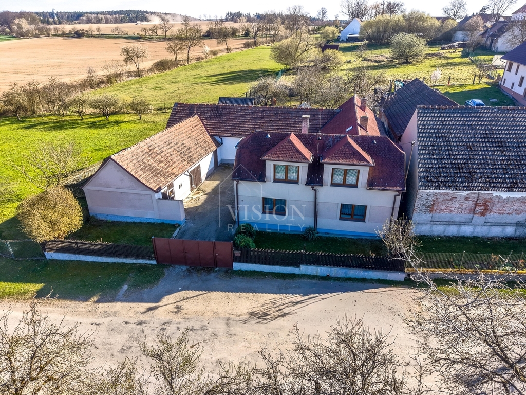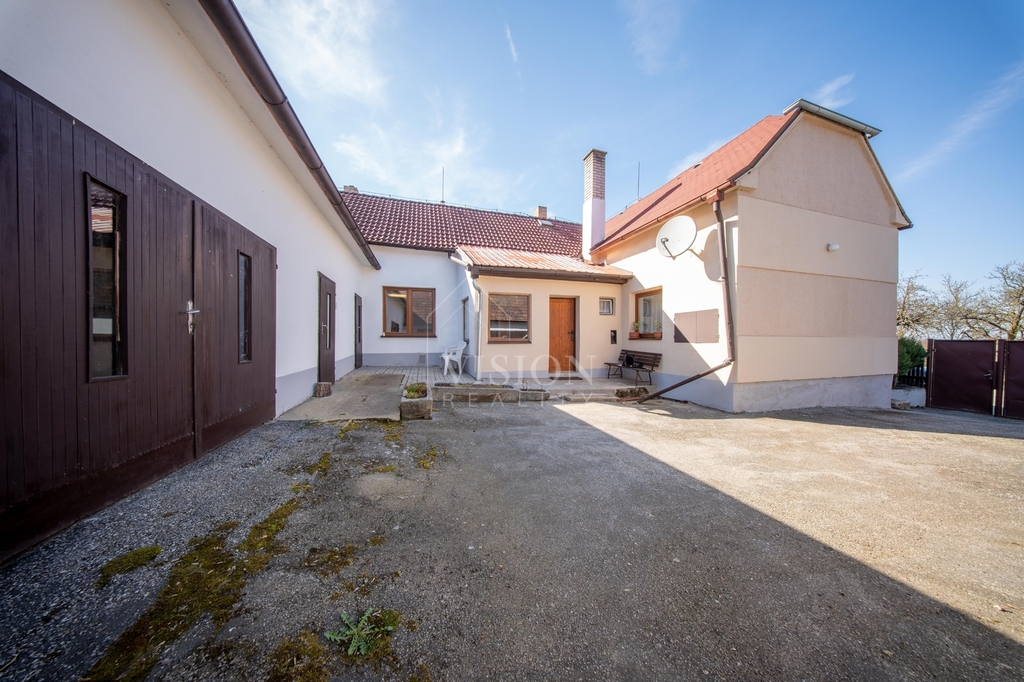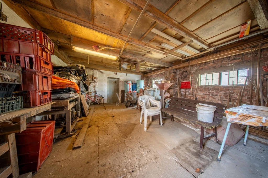 Velkou předností je uzavřený dvůr zajišťující soukromí a navazující hospodářské budovy, které poskytují široké možnosti využití – ať už pro skladování, dílnu nebo další zázemí.