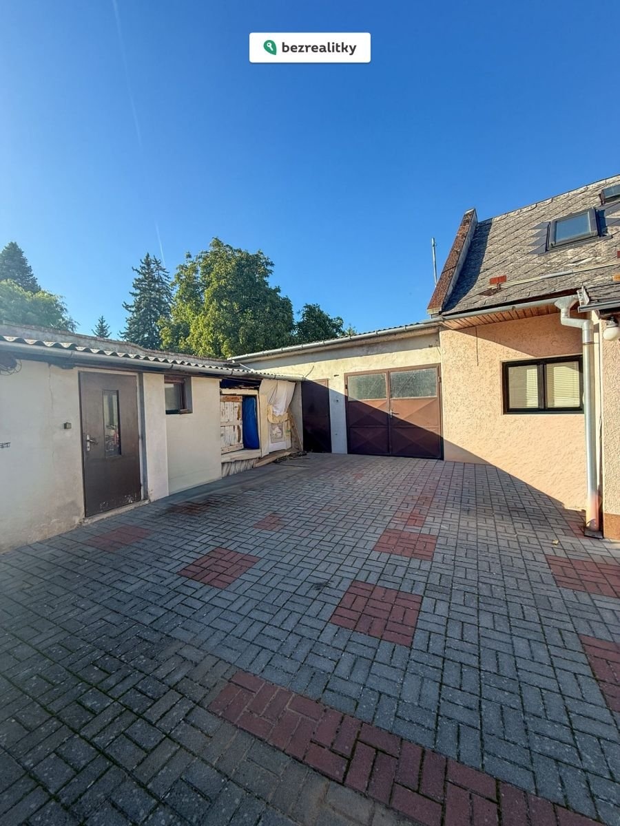 K domu patří samostatná garáž s dílnou a přístavky (vhodné např. pro chov drobných zvířat). Nad garáží je možné vybudovat terasu pro horní byt.