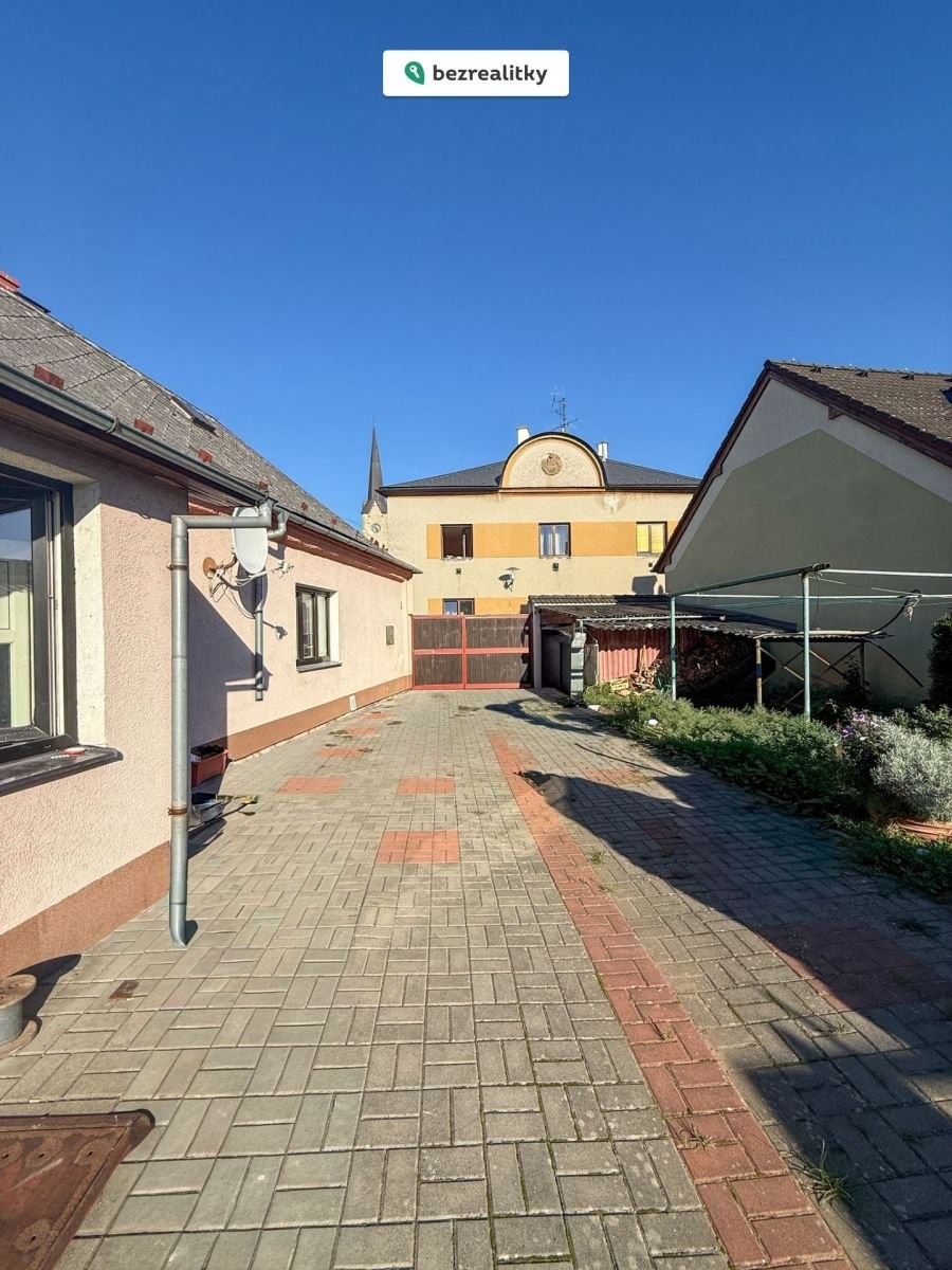 Na pozemku o velikosti cca 400 m² se nachází prostorný dlážděný dvůr s dostatkem místa pro 3–4 auta a menší travnatá plocha vhodná pro posezení či zahrádku.