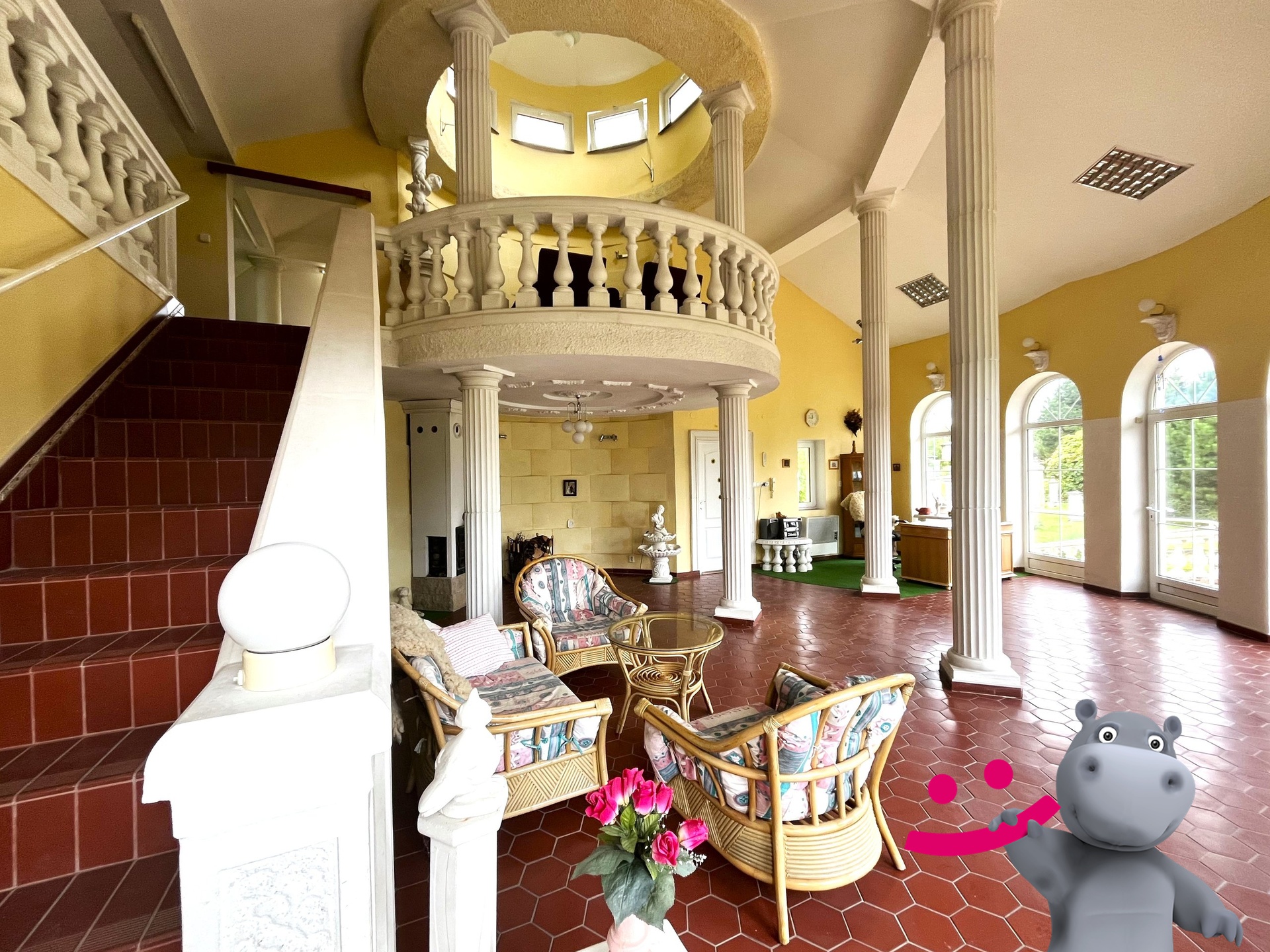 Vstup do budovy je přes terasu (cca72 m2), na které je jak schodiště, tak bezbariérový přístup.