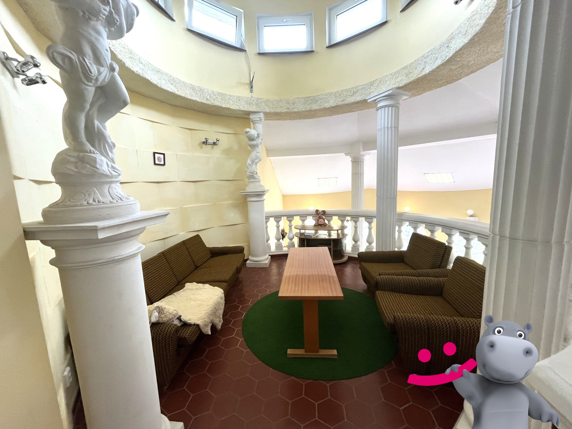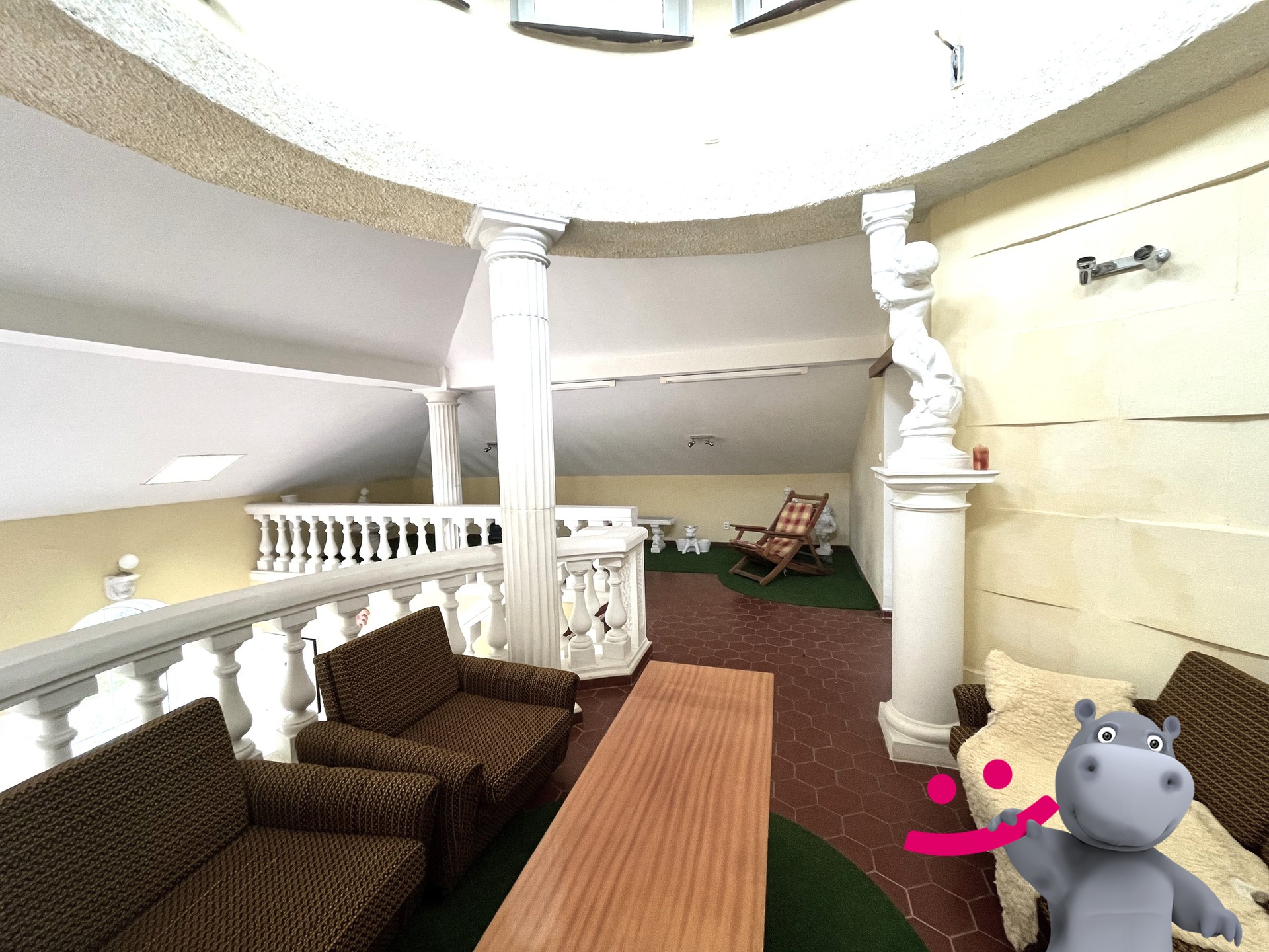 Do otevřeného patra (cca 65m2) se jde po schodišti, kde jsou další dvě prostory - odpočinková na posezení - menší a větší, které můžou sloužit pro obchodní jednání i odpočinek, dále jako prodejní plocha či kancelář, případně po osazení dveřmi jako další sklad apod.