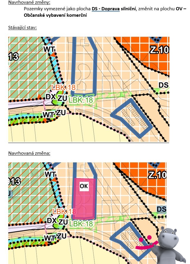 V současné chvíli probíhá jednání na úřadech o změně možnosti využití a další zástavby.